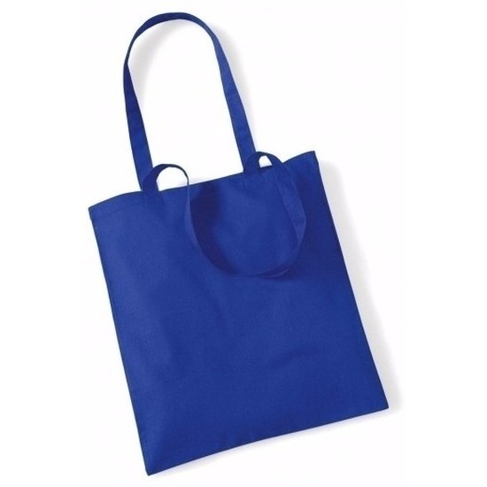 10x Katoenen tasjes kobaltblauw 42 x 38 cm. Kobaltblauwe katoenen tassen/shoppers met een inhoud van 10 liter. De tassen kunnen gebruikt worden als boodschappentas, schoudertas, gymtas of als schooltas!