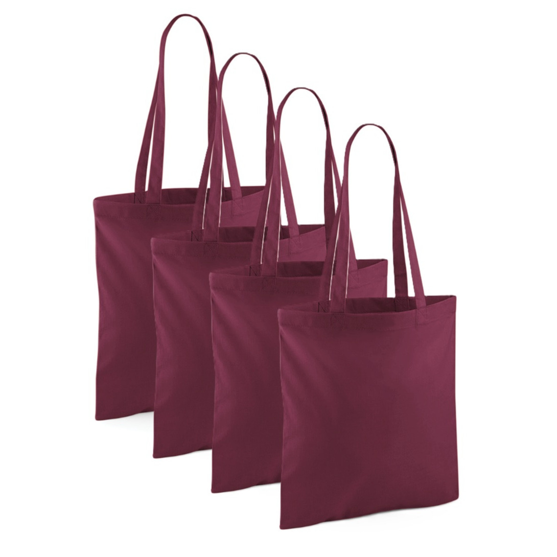 10x Katoenen tasjes bordeauxrood 42 x 38 cm. Bordeauxrode katoenen tassen/shoppers met een inhoud van 10 liter. De tassen kunnen gebruikt worden als boodschappentas, schoudertas, gymtas of als schooltas!