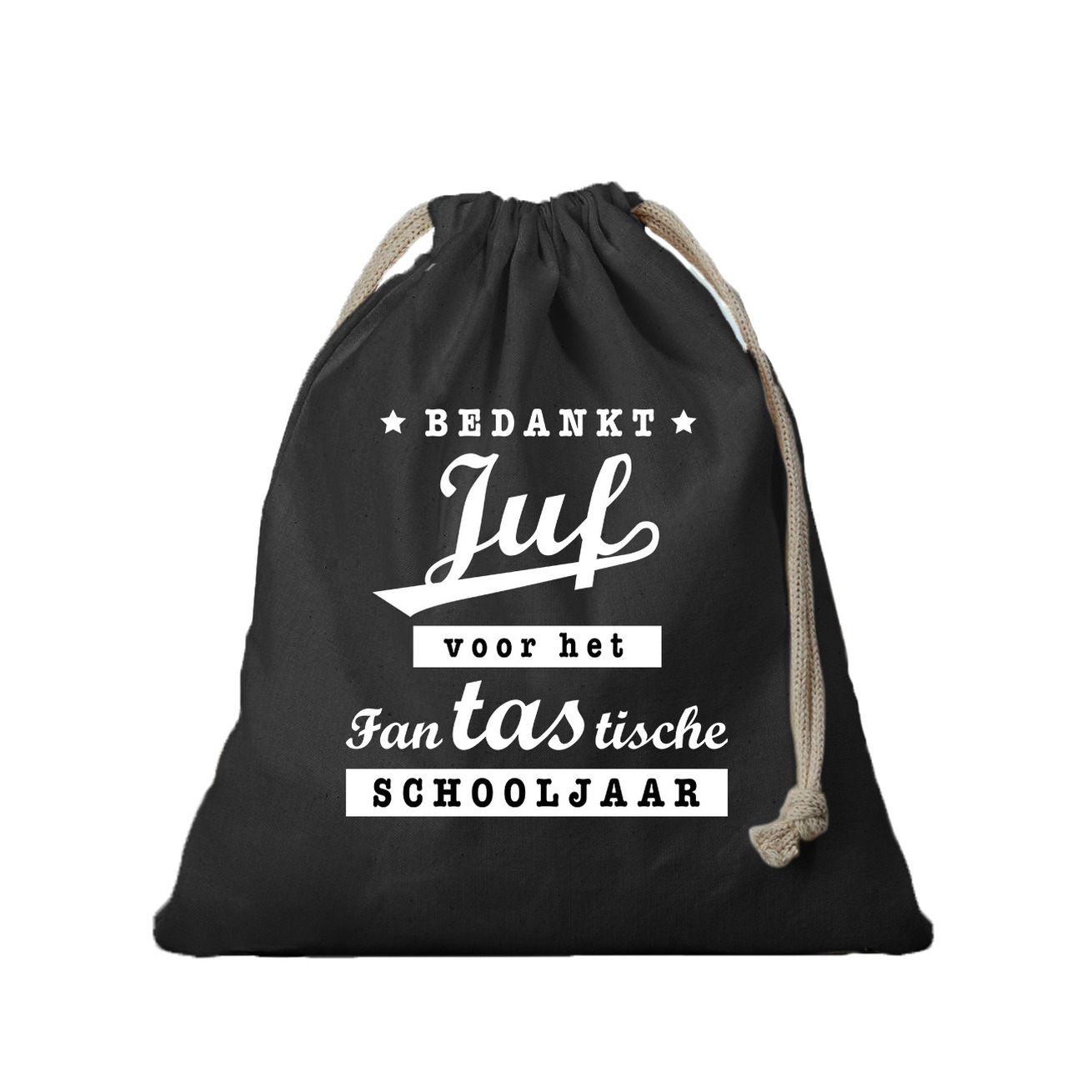 1x Canvas cadeautasjes bedankt juf zwart met koord 25 x 30 cm. Geschenk/ cadeautasjes bedankt juf om een cadeau in te verpakken. Zwart canvas zakje bedrukt met de tekst: bedankt juf voor het fantastische schooljaar. Formaat: ca. 25 x 30 cm.