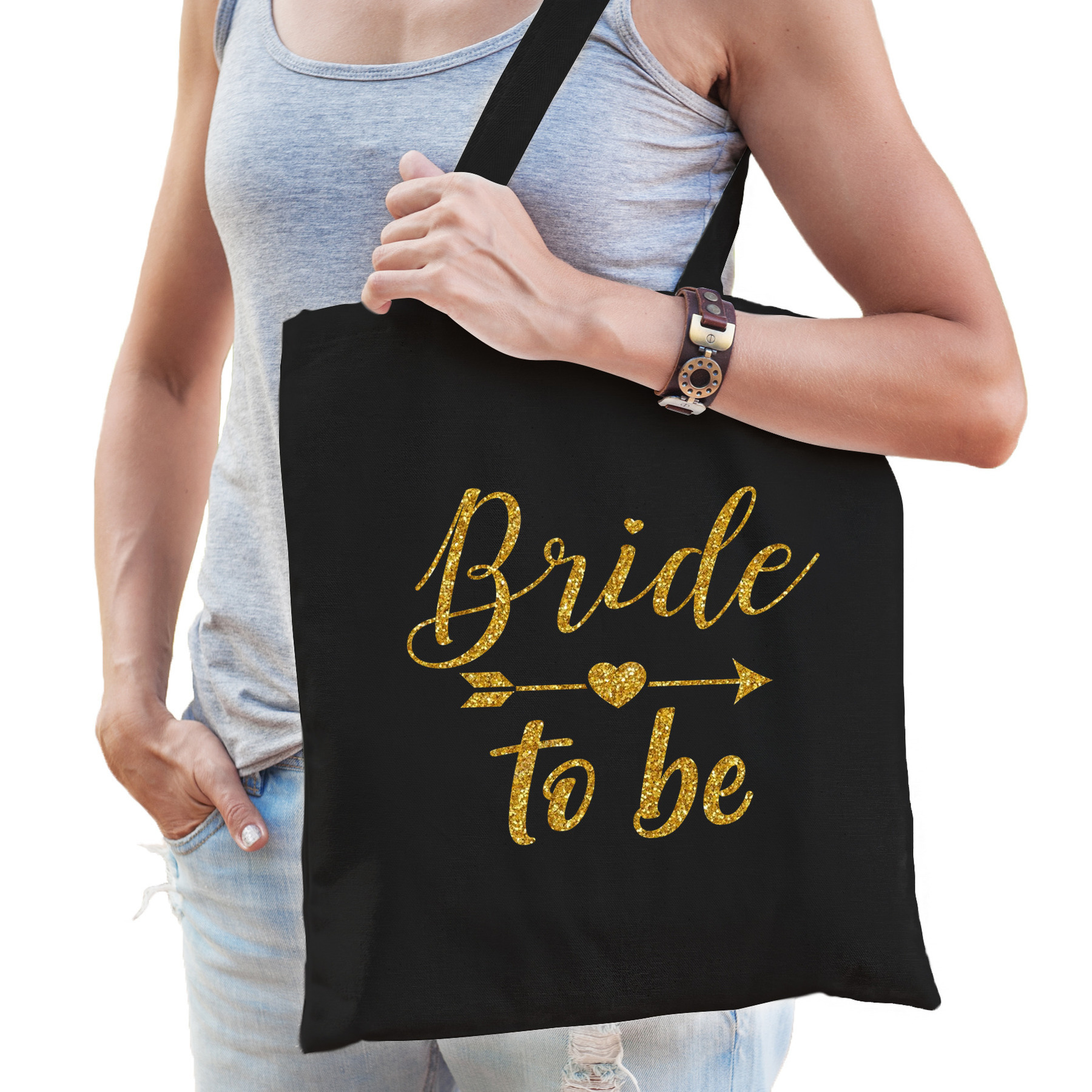 1x Vrijgezellenfeest Bride to be tasje zwart goud/ goodiebag dames. Leuk tasje voor de aanstaande bruid op een vrijgezellenfeest vrouw, als accessoires of als goodiebag.