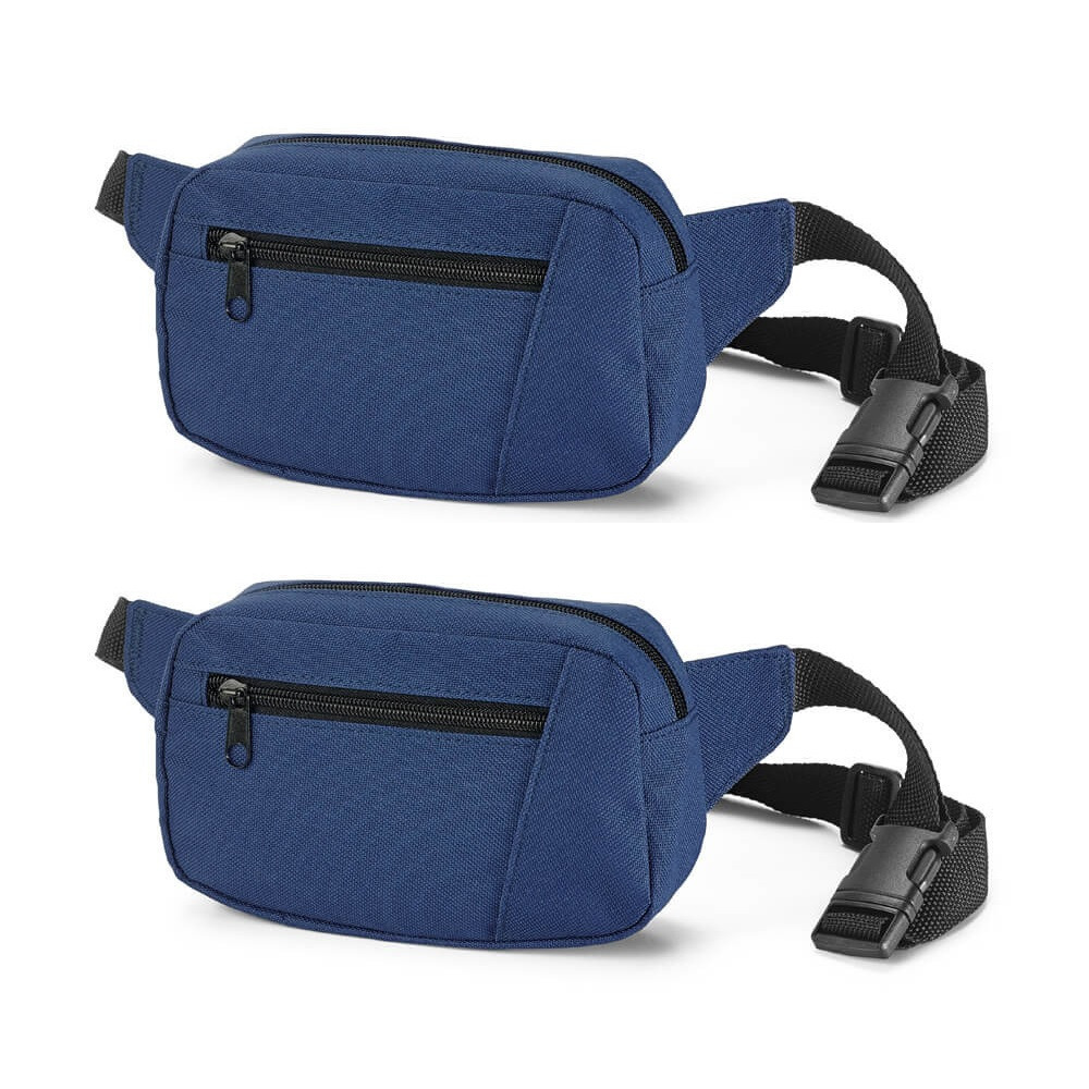 2x stuks blauwe heuptasjes/buideltasjes 21 x 12 cm. Blauwe heuptas met verstelbare, zwarte heupband. Het formaat is ca. 21 x 12 x 5 cm. Materiaal: polyester (600D). Het heuptasje bevat een hoofdvak aan de bovenzijde en een vakje aan de voorzijde welke beide voorzien van zwarte ritssluiting.