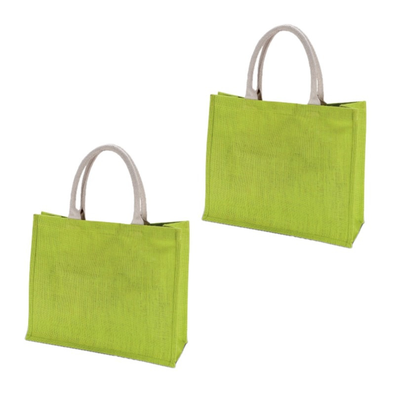 2x stuks jute lime groene boodschappentassen 42 cm