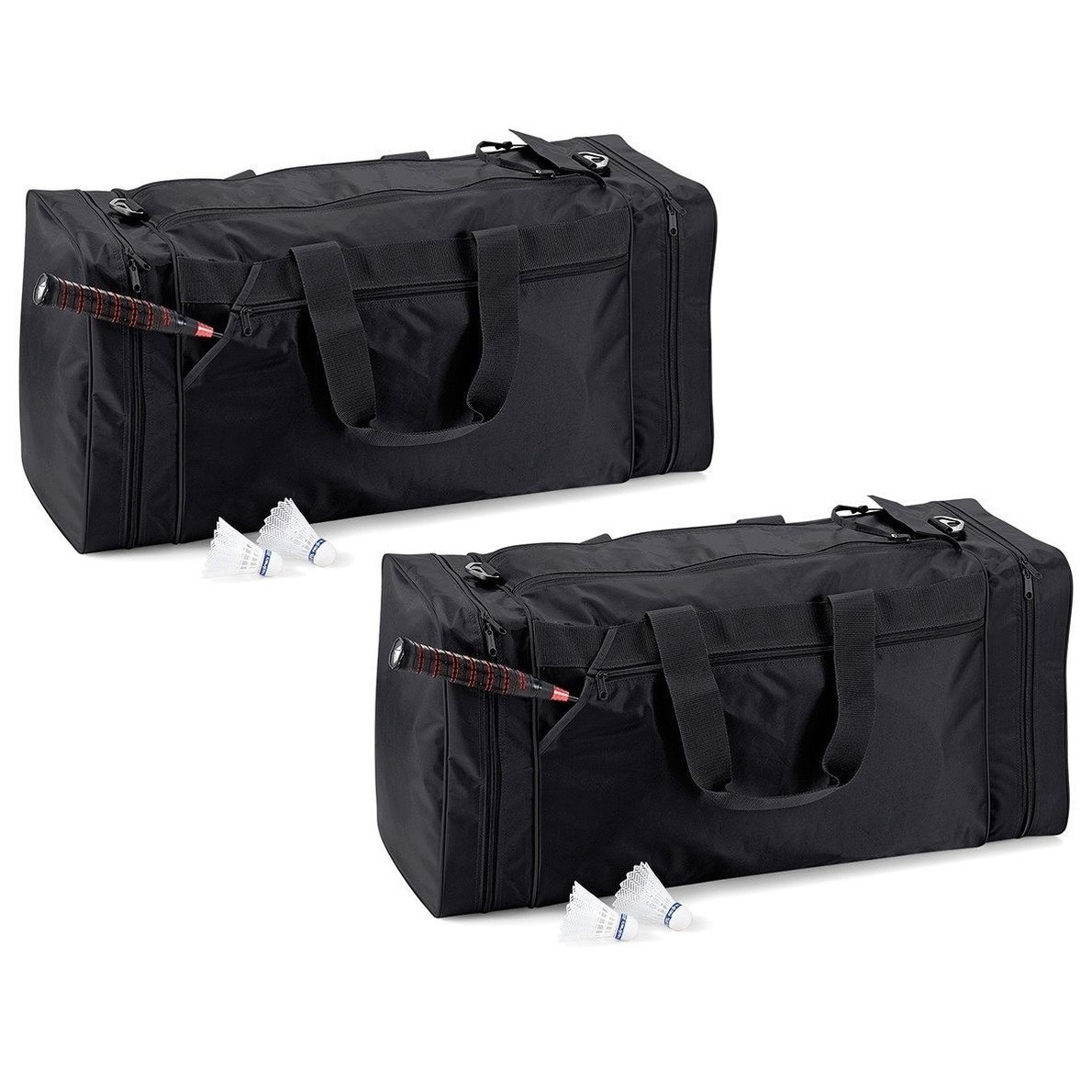 2x stuks reistas zwart 74 liter. Grote reistas/sporttas met PVC binnenzijde. Deze tas is voorzien van meerdere vakken, een verstelbare en afmeembare schouderband en verstevigde bodem. Formaat: ongeveer 75 x 35 x 30 cm. Inhoud: ongeveer 74 liter.