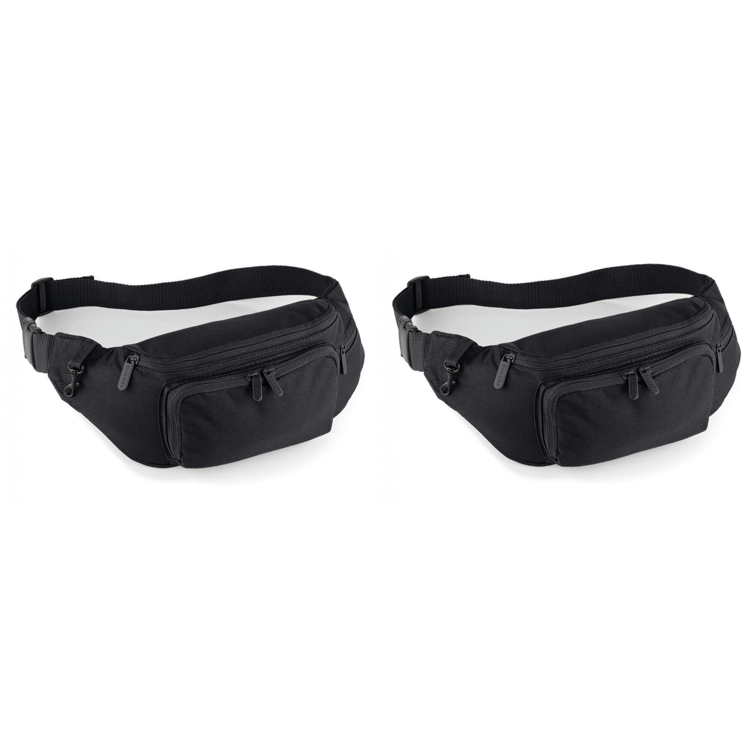2x stuks zwart heuptasje/buideltasje 37 x 15 cm. Comfortabel en perfect voor het vervoer van onmisbare spullen. De heuptas is voorzien van een verstelbare heupband, een sluithaak voor sleutels en verschillende zakken met ristsluiting. Het formaat is ca. 37 x 15 x 10 cm, inhoud: 2 liter. Materiaal: 187 grams kwaliteit polyester 600D.