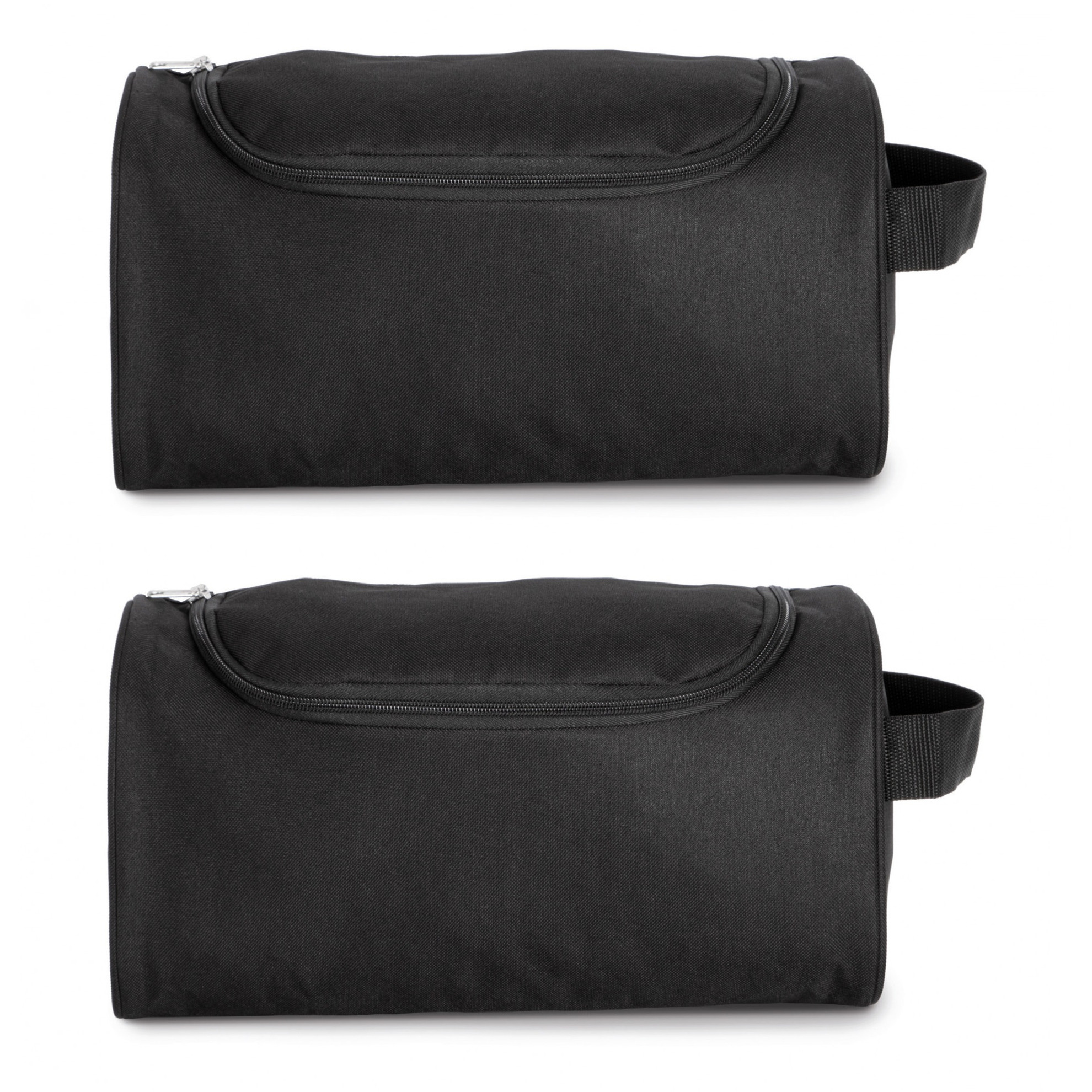 2x stuks zwarte schoenentas 11 liter voor 1 paar schoenen. Voorzien van grote ritssluiting. Inhoud: 11 liter. Formaat: 35 x 17 x 19 cm. Materiaal: 100% polyester 600D. Reistas/opbergtas voor schoenen.