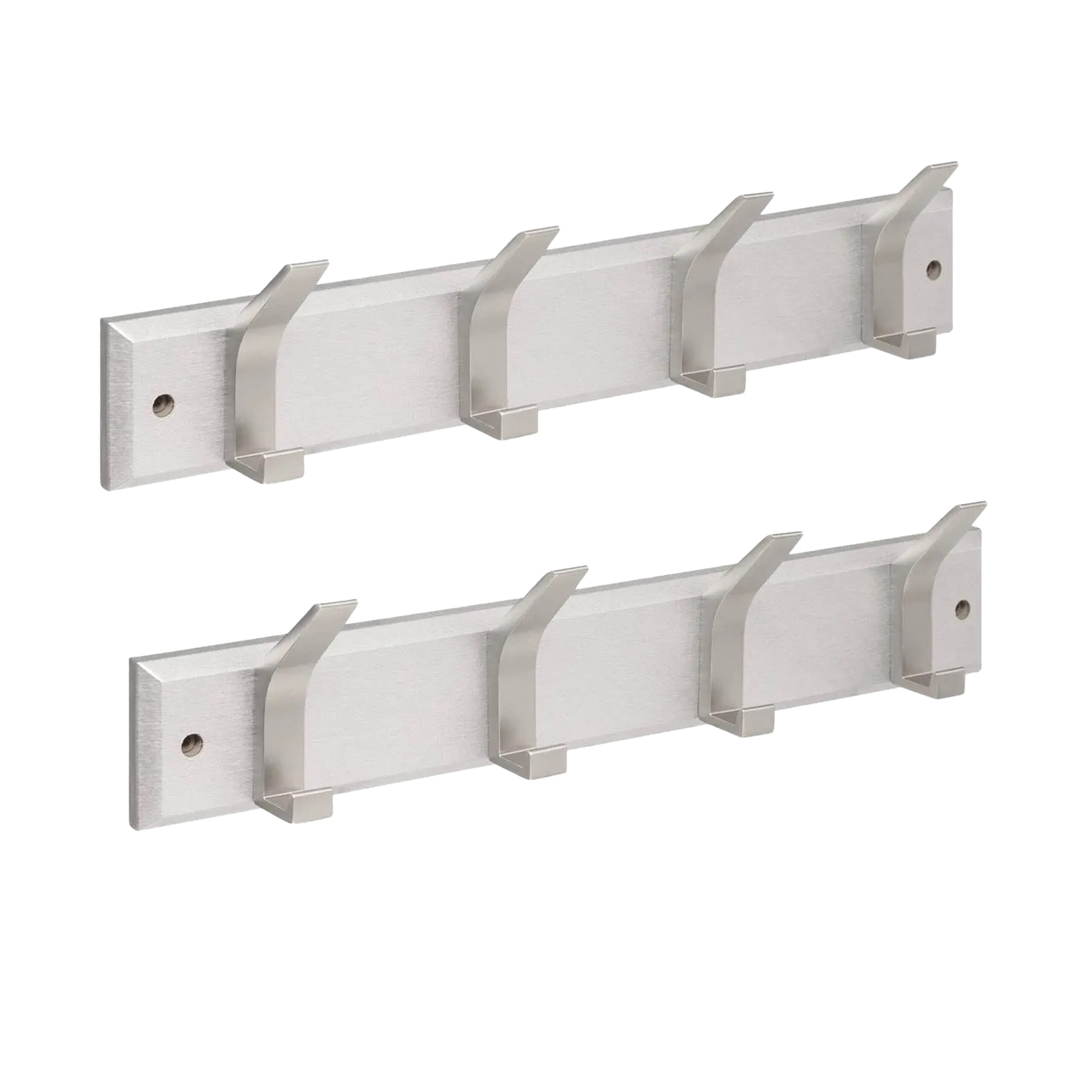 5Five Kapstok – 2x – 4 ophang haken – RVS – grijs/zilver – 45 x 10 cm – wandkapstok
