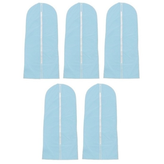 5x Lichtblauwe kledinghoezen 137 x 60 cm met rits. Lichtblauwe beschermhoes om uw kleding netjes te houden of op een nette manier te vervoeren. Afmeting: ca. 137 x 60 cm. Materiaal: zacht PEVA materiaal. Kledinghoezen/beschermhoezen kleding opbergen accessoires.