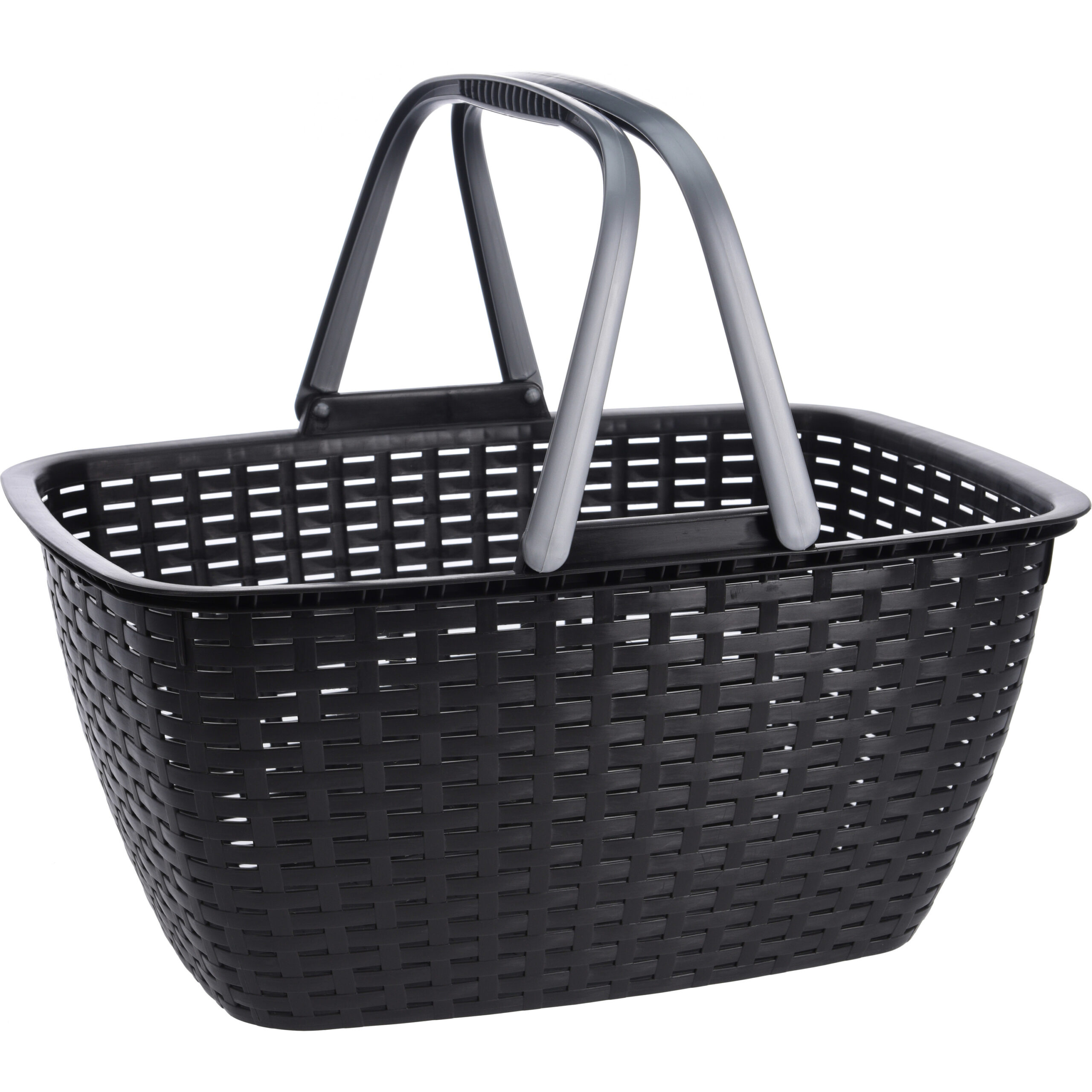Antraciet grijze boodschappenmandje/winkelmandje met hengsel 27 liter 43 x 30 cm. Een compact mandje met 2 hengsels om mee te nemen wanneer u boodschappen gaat doen, in plaats van een boodschappentas.