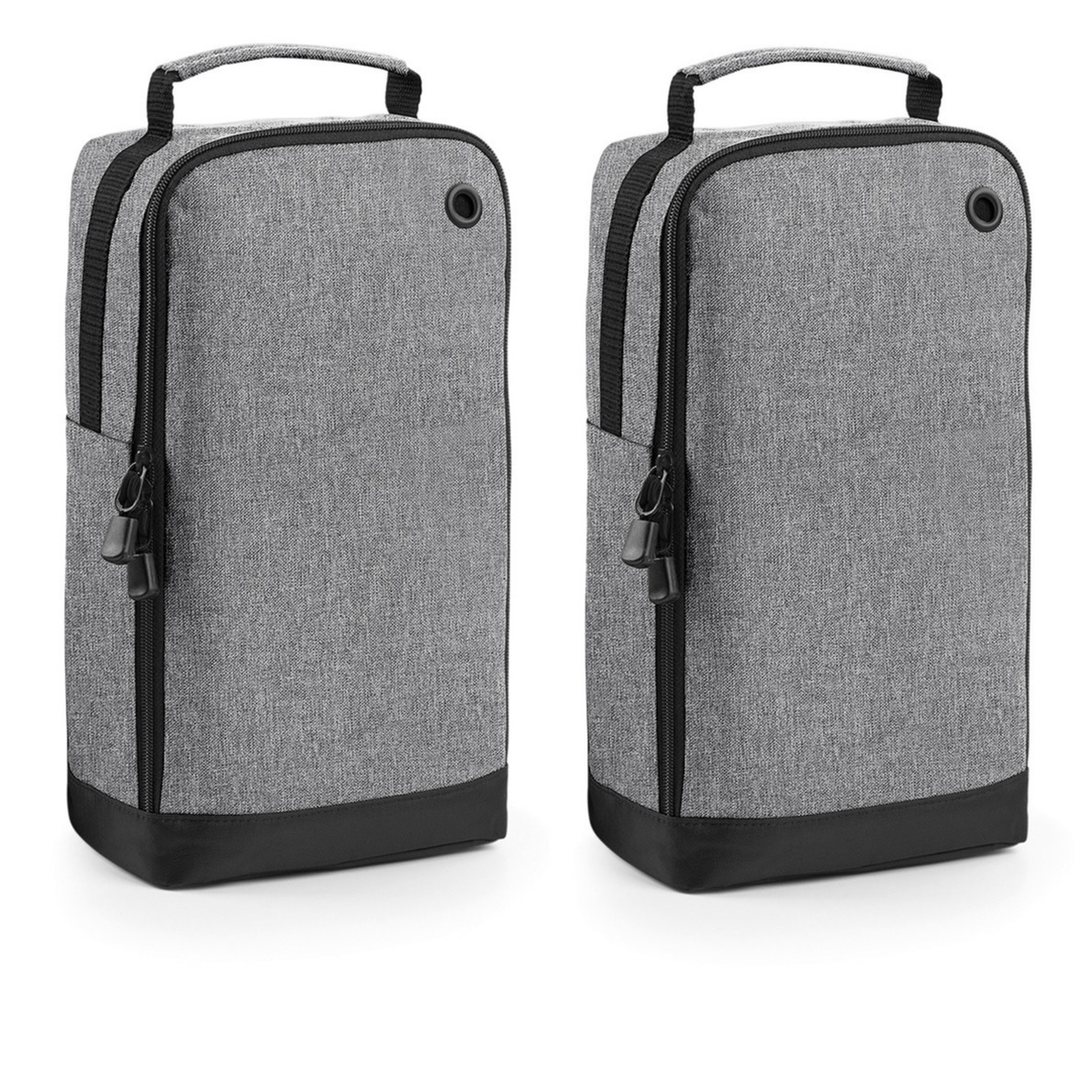 2 stuks schoenentas van 8 liter, in het grijs, voor 1 paar schoenen. Voorzien van grote ritssluiting. Inhoud: 8 liter. Formaat: 35 x 19 x 12 cm. Materiaal: 100% polyester 420D. Reistas/opbergtas voor schoenen.