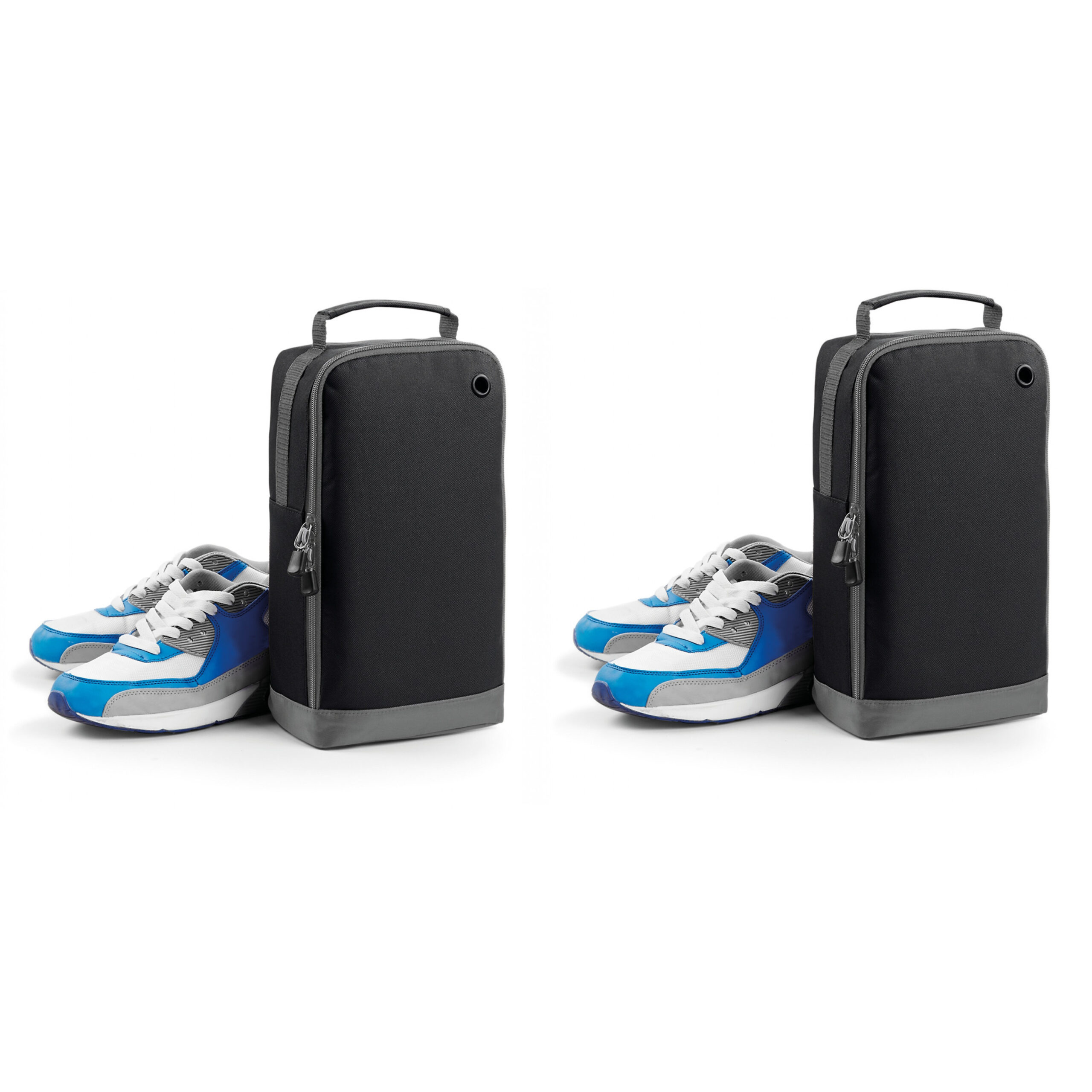 2 stuks schoenentas van 8 liter, in het zwart, voor 1 paar schoenen. Voorzien van grote ritssluiting. Inhoud: 8 liter. Formaat: 35 x 19 x 12 cm. Materiaal: 100% polyester 420D. Reistas/opbergtas voor schoenen.