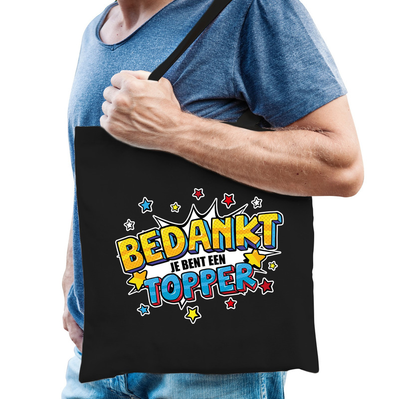 Bedankt topper katoenen tas zwart voor heren. Dit is het perfecte cadeau tasje om iemand te bedanken voor alles wat hij heeft gedaan. Een leuk cadeau omdat die topper het verdiend heeft!