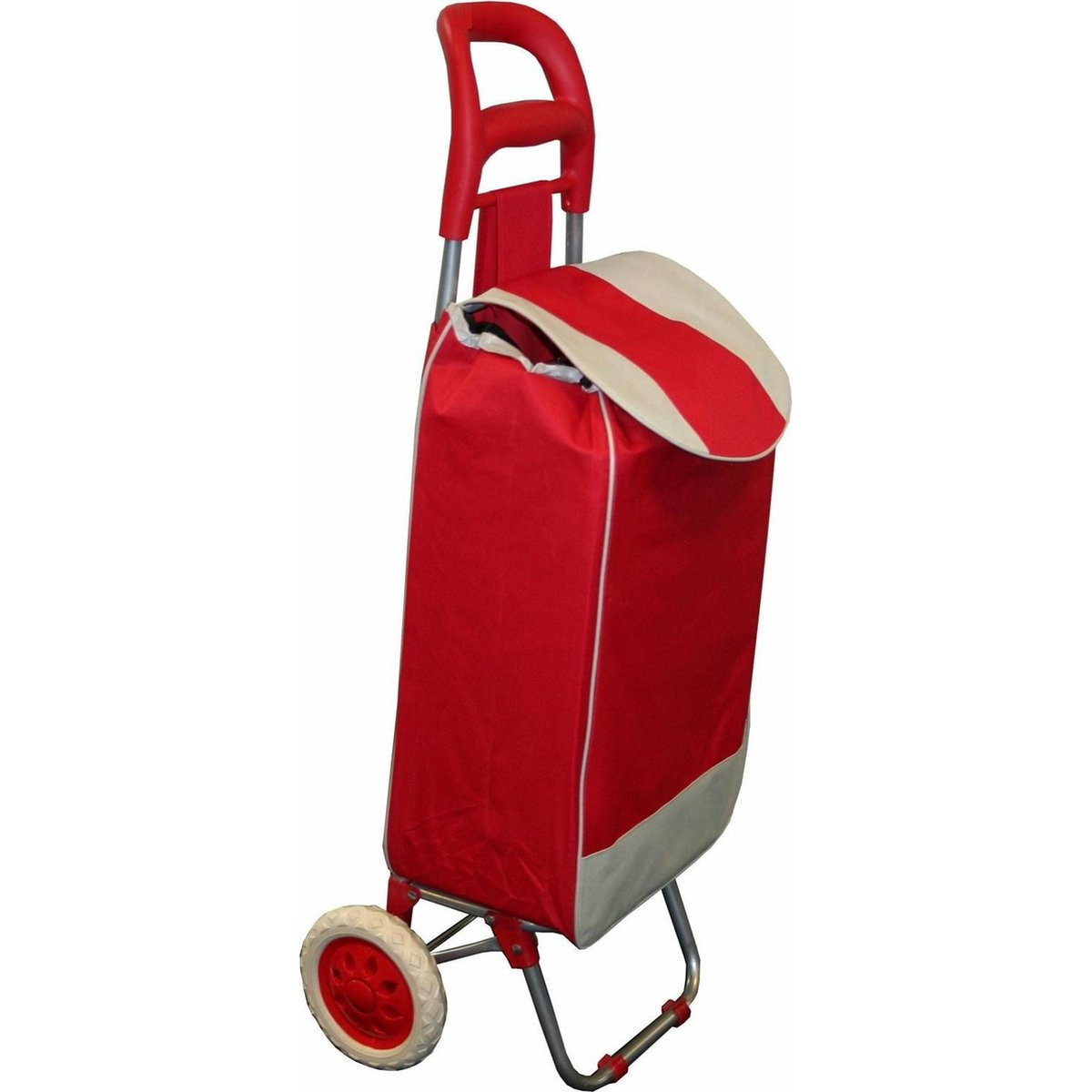 De stevige constructie van stof en een robuust metalen frame zorgt voor langdurig gebruik. De soepel rollende wielen maken het verplaatsen eenvoudig, zelfs in drukke winkelstraten of smalle supermarktpaden.