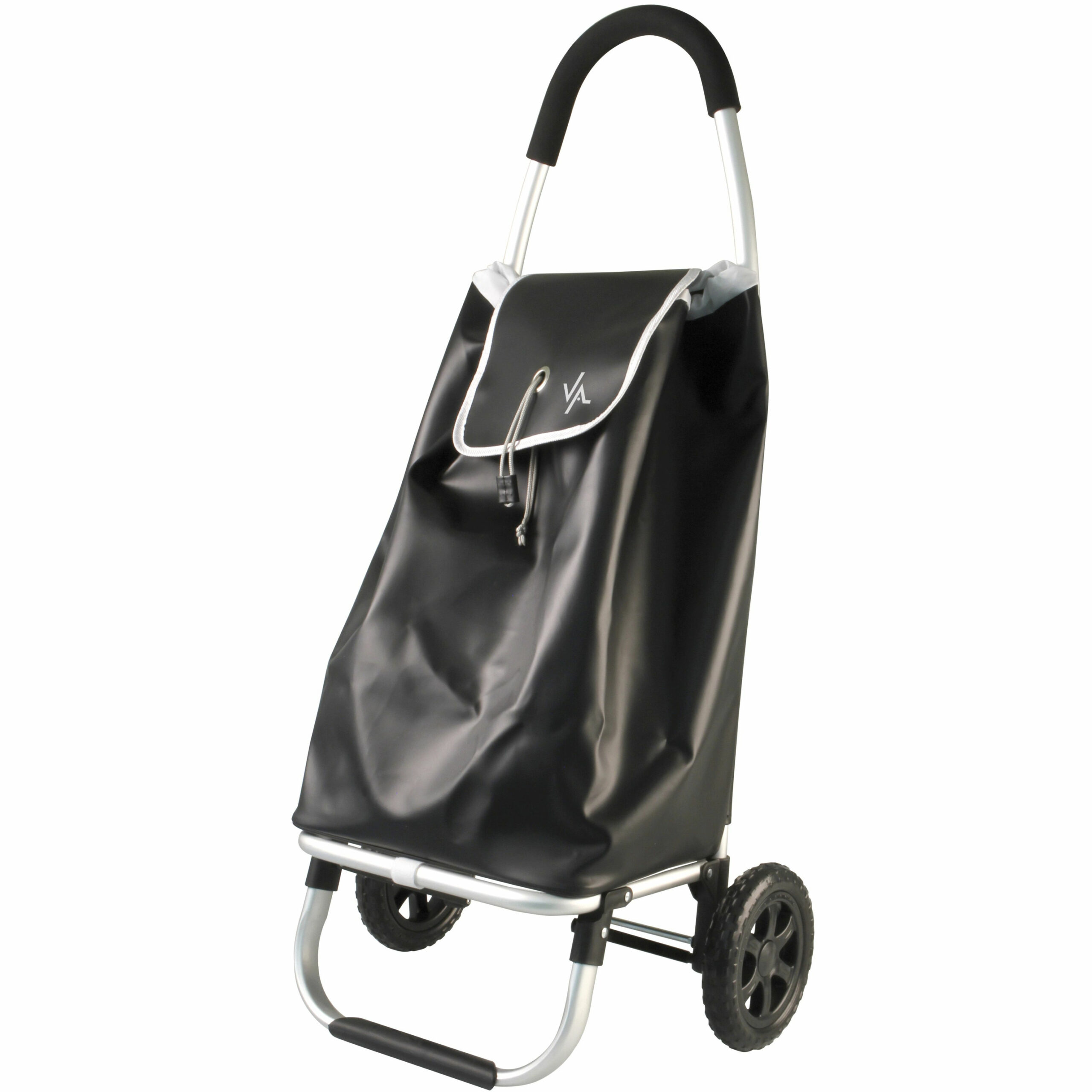 Opvouwbare boodschappentrolley in de kleur zwart. Deze trolley heeft een aluminium frame, 2 grote kunststof wielen, een inhoud van circa 50 liter en opgevouwen een formaat van circa 51 x 45,5 x 15 centimeter. De draagkracht van deze trolley is maximaal 15 kilo. Genoeg ruimte en capaciteit dus voor alle boodschappen of andere items.