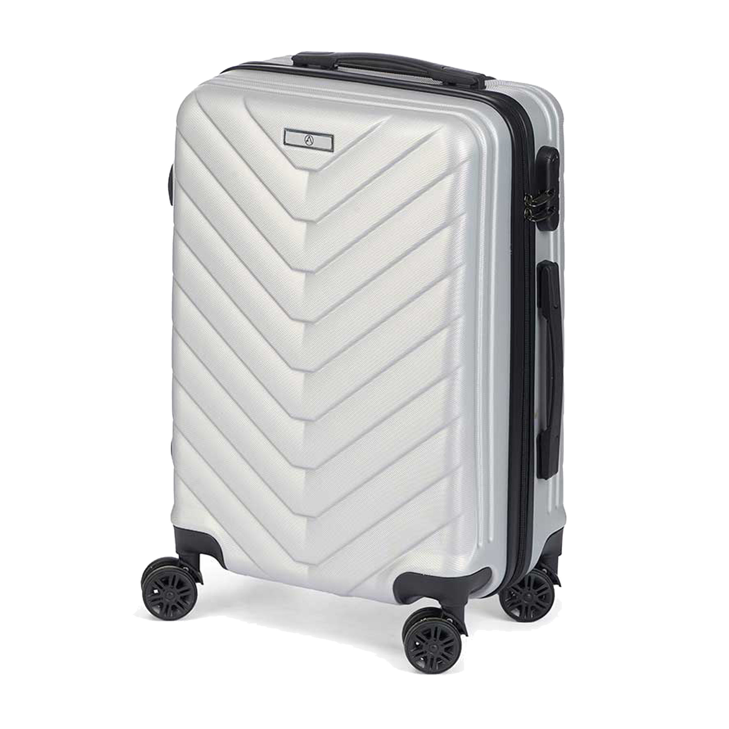 Cabine handbagage reis trolley koffer met zwenkwielen in de kleur zilvergrijs(in luxe glans). Handige hardcase reiskoffer voor handbagage met afsluitbare rits, handgreep uitschuifbaar tot 100 cm, cijferslot en binnen vakjes. Stevig model, robuust. Afmetingen: 57 X 38 X 23 cm. Geschikt voor de meeste luchtvaartmaatschappijen. Model: Pyramid. Materiaal: ABS kunststof. Gewicht: 3 kilo. Het oog wil ook wat.