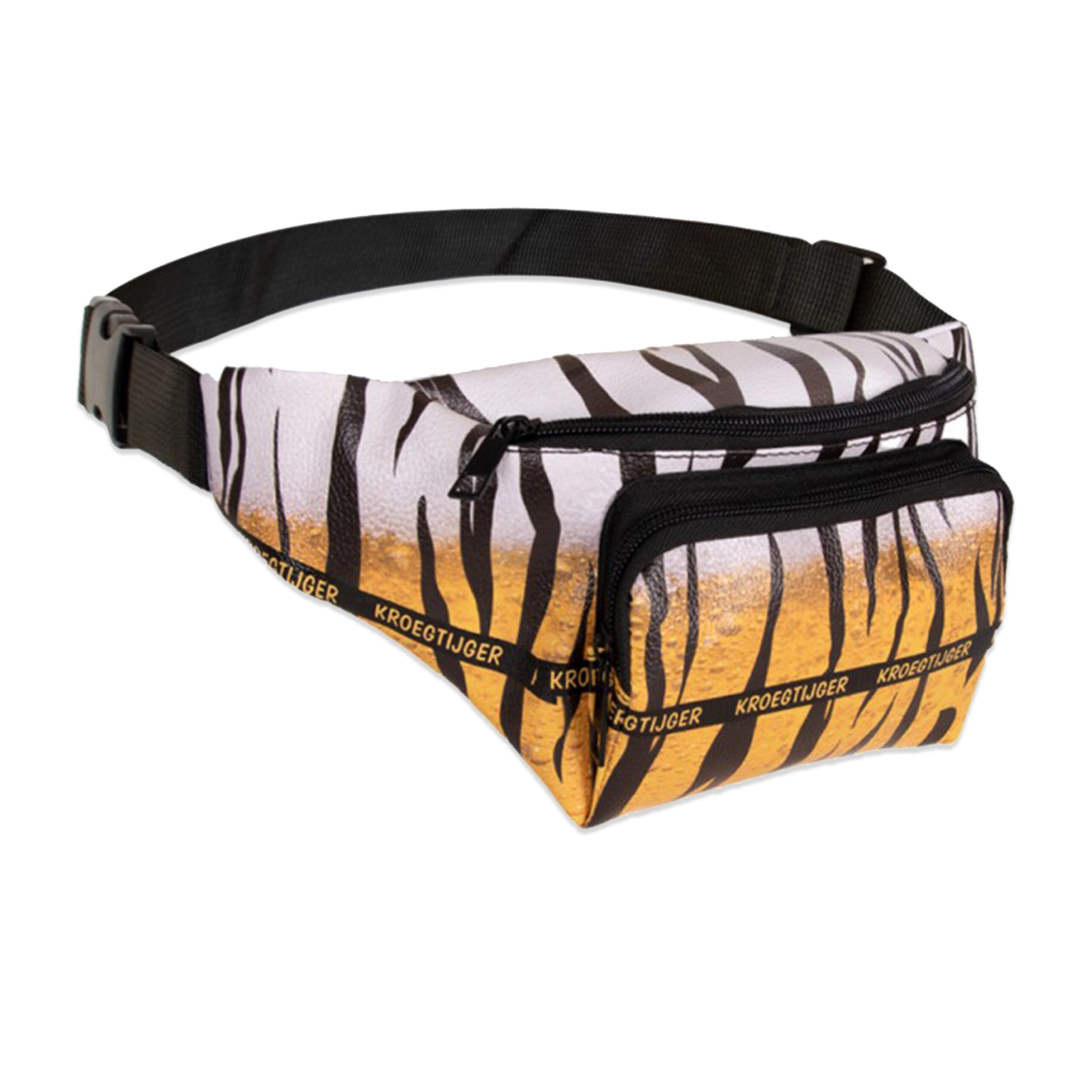 Heuptasje voor volwassenen in een Kroegtijger animal thema print. Maak je foute party outfit helemaal af met dit tijgerprint heuptasje! Dit speelse accessoire brengt je verkleedlook naar een hoger niveau. Of je nu in een wild thema feestje stapt of gewoon een opvallende touch aan je outfit wilt geven, dit heuptasje is de perfecte keuze. Met de stoere tijgerprint maak je een statement, en je hebt altijd je essentials binnen handbereik! Materiaal: polyester. De riem is verstelbaar. Handig tijdens een verkleed feest of een festival om je belangrijke spullen bij je te kunnen houden. Ga voor de wildste look op het feestje met dit heuptasje in tijgerprint! Let op: dit is een verkleedaccessoire voor volwassenen, geen speelgoed.
