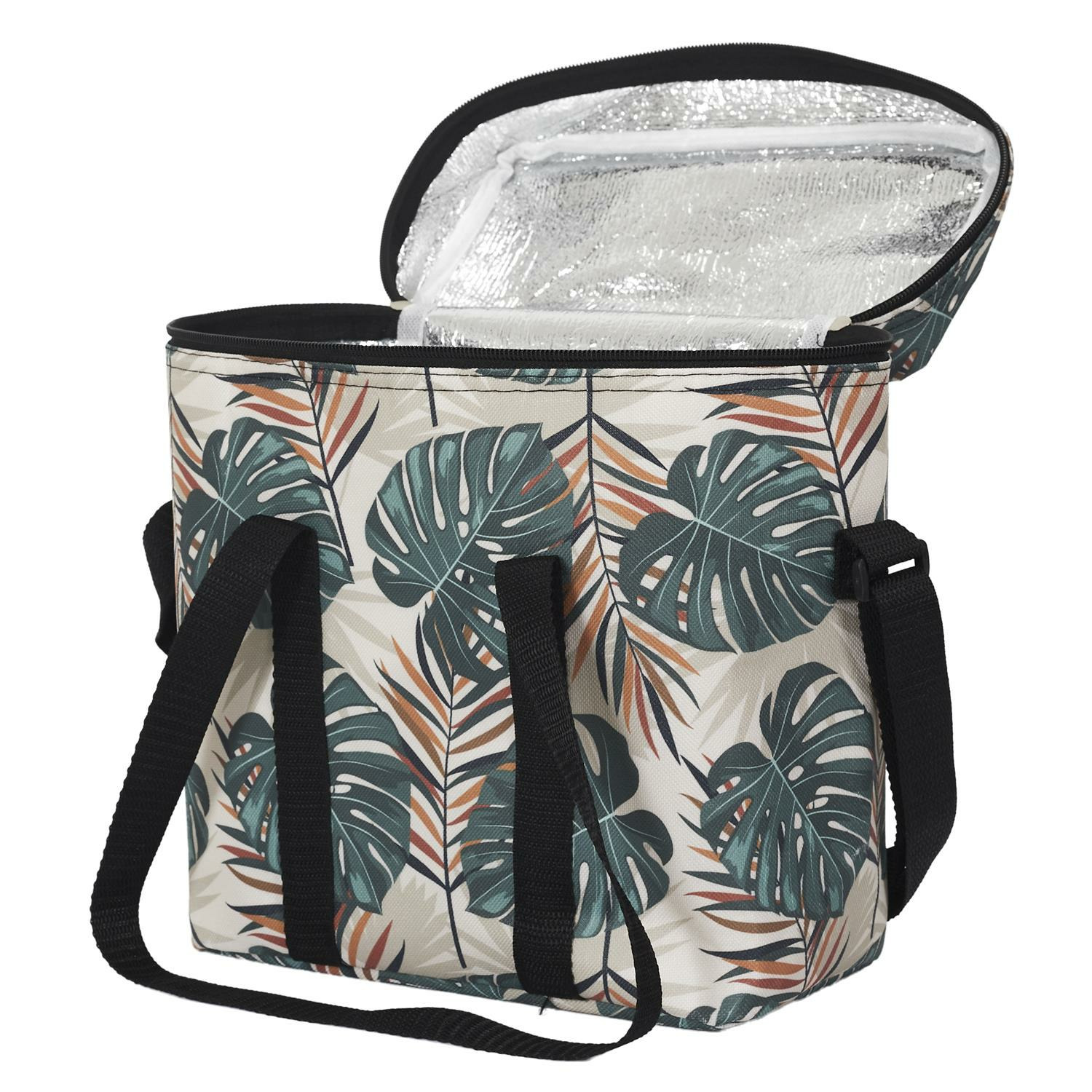 Koeltas Tropical Leafs van Cook Concept met enkel compartiment voor lunch, voedsel en drankjes. Sfeervolle koeltas in met hoofdkleur groen, in een multi kleuren mix voor het koelen van voedsel, dranken, en of om uw lunch/diner in te bewaren. De koeltas heeft een isolerende laag aan de binnenzijde en is voorzien van een ritssluiting en korte hengsels. Inhoud: 12 liter. Materiaal: polyester/aluminium. Formaat ongeveer: 30 x 15 x 25 cm. Koeltassen, lunchtrommels, lunchbag, flessen en blikjes.