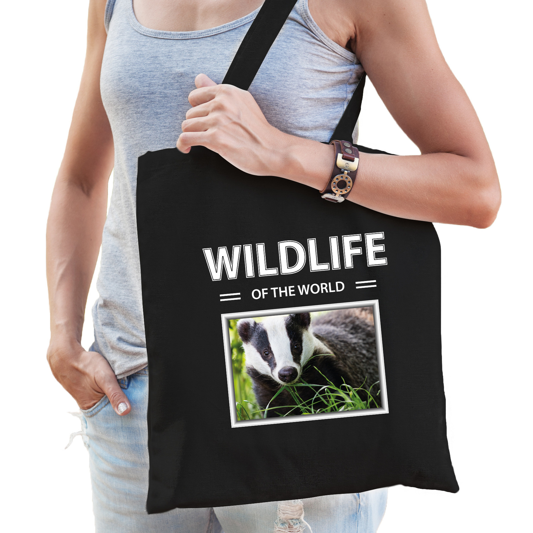 Das tasje zwart voor volwassenen en kinderen. Op deze tas staat een Das afbeelding en de tekst: wildlife of the world. Een musthave voor een echte dieren/ Das liefhebber of iemand die alles van Dassen spaart. Erg leuk om cadeau te doen aan een echte Das fan of gewoon om zelf te gebruiken!