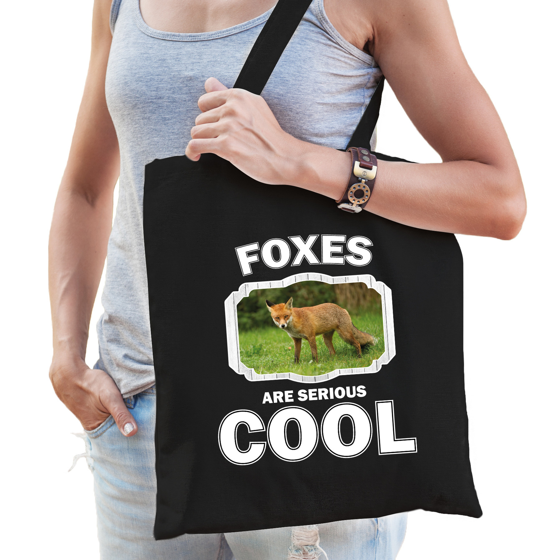 Dieren katoenen tasje bruine vos zwart voor volwassenen en kinderen. Op deze tas staat een vossen afbeelding en de tekst: foxes are serious cool. Een musthave voor een echte dieren/ vossen liefhebber of iemand die alles van vossen spaart. Erg leuk om cadeau te doen aan een echte vossen fan of gewoon om zelf te gebruiken!