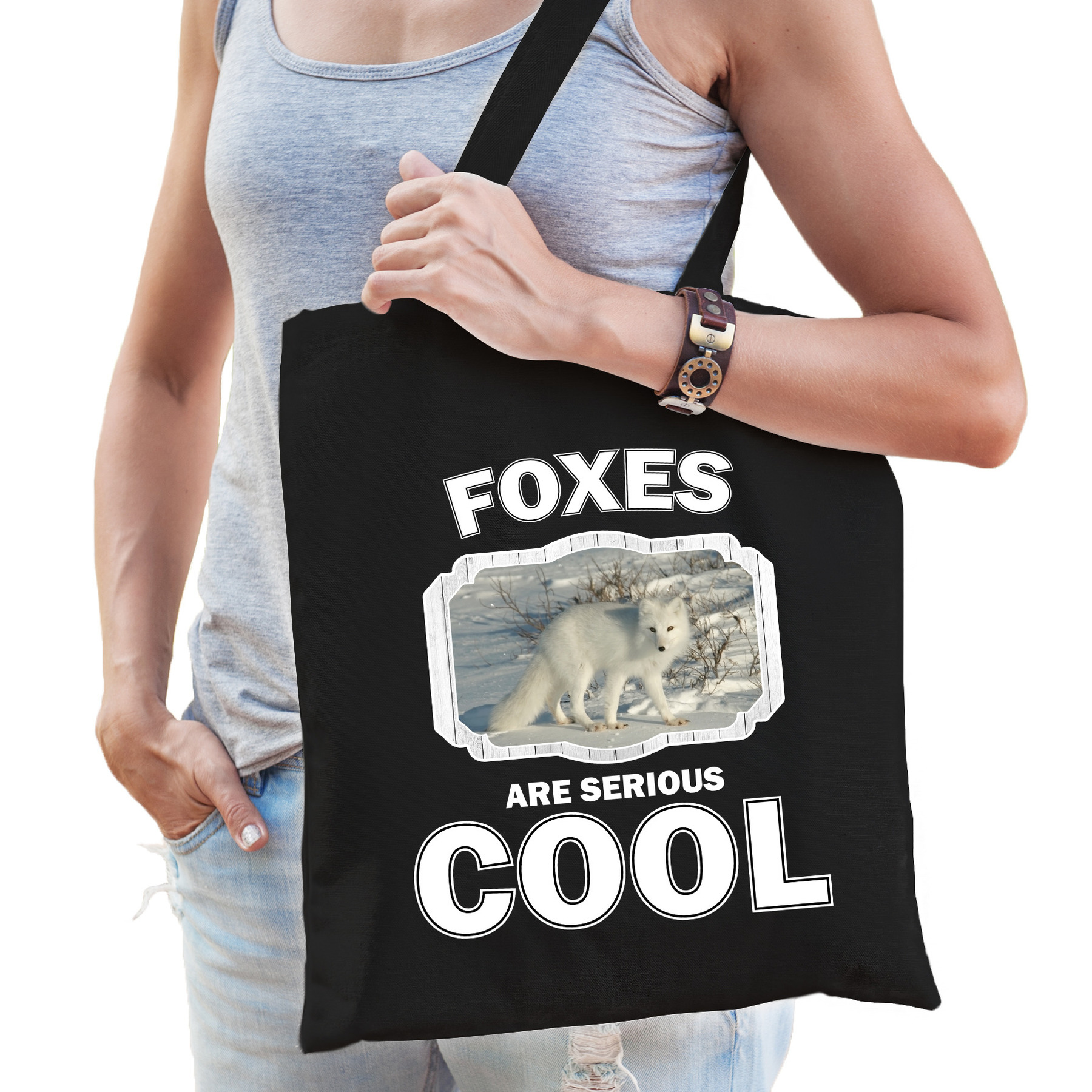 Dieren katoenen tasje poolvos zwart voor volwassenen en kinderen. Op deze tas staat een vossen afbeelding en de tekst: foxes are serious cool. Een musthave voor een echte dieren/ vossen liefhebber of iemand die alles van vossen spaart. Erg leuk om cadeau te doen aan een echte vossen fan of gewoon om zelf te gebruiken!