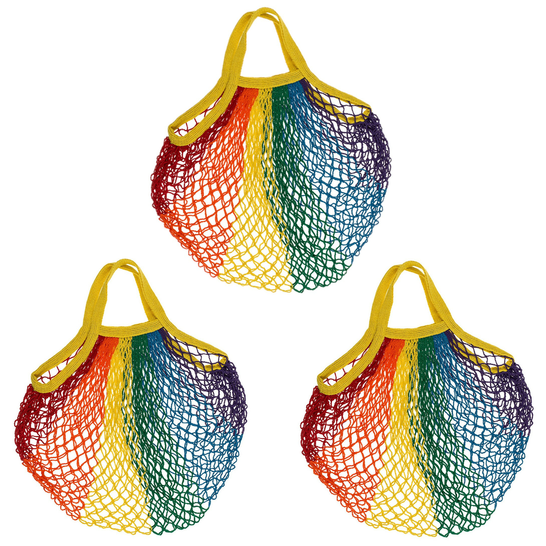 5x Draagtas in Pride/regenboog thema kleuren, gemaakt van katoen met formaat 40 x 60 cm. LHBTIQ+ en Gay Pride festival musthaves artikelen. Uitingen van verdraagzaamheid door regenboogvlag kleuren artikelen te gebruiken. Boodschappentas.