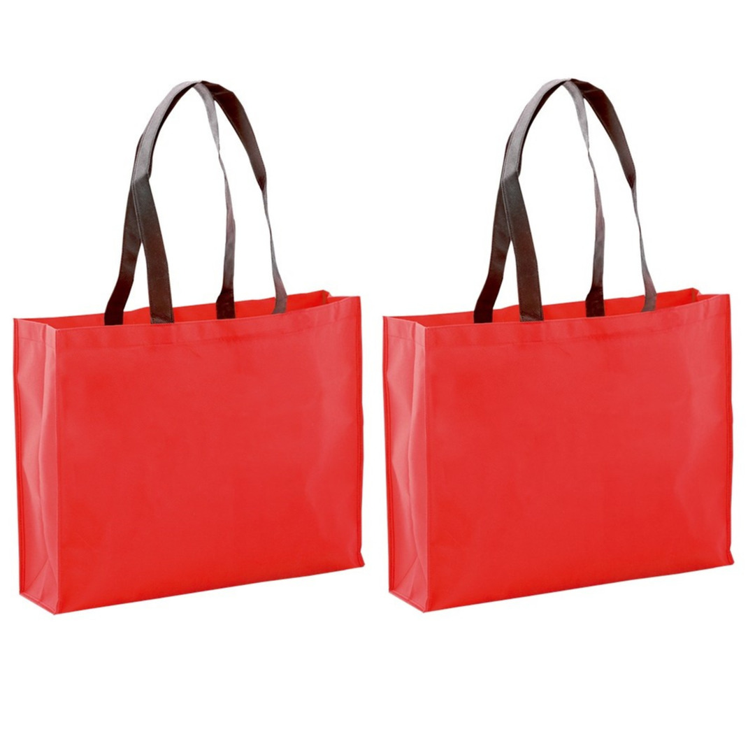 Draagtas/schoudertas/boodschappentas met hengsels – 4x stuks – oranje – 35 x 40 x 15 cm – polyester