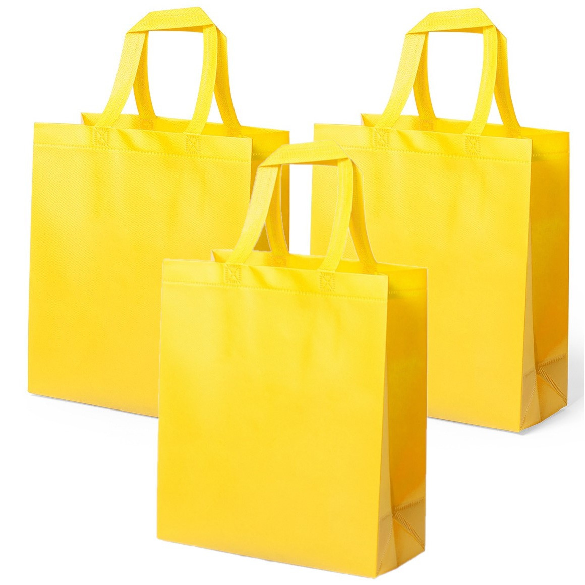 10 stuks draagtas/schoudertas/boodschappentas in de kleur geel met afmeting van 35 x 40 x 15 cm. Stevig gelamineerd met een draagvermogen van 14 kilo. Ook geschikt als goodie-bag/cadeautas. Gemaakt van polyester stof.