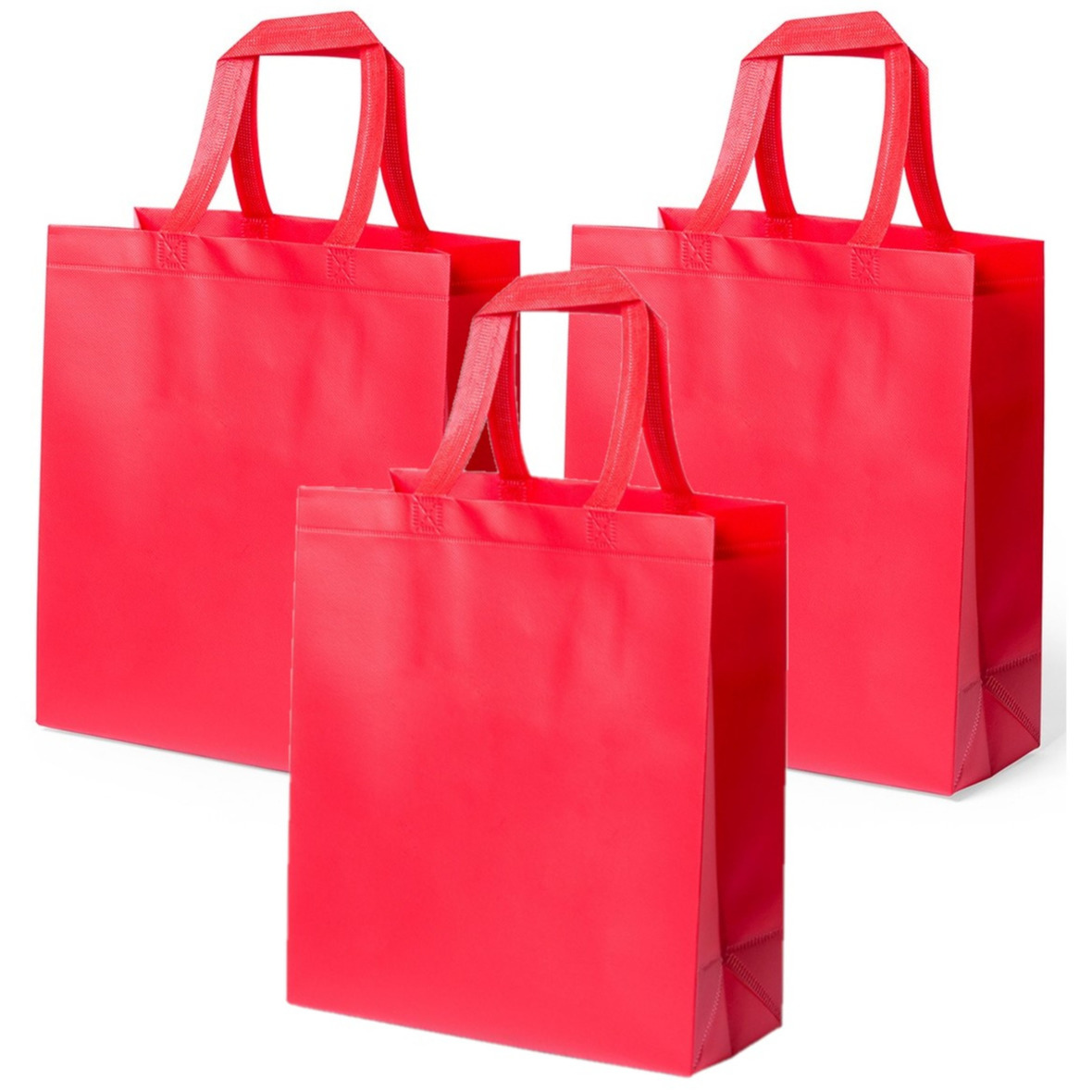 10 stuks draagtas/schoudertas/boodschappentas in de kleur rood met afmeting van 35 x 40 x 15 cm. Stevig gelamineerd met een draagvermogen van 14 kilo. Ook geschikt als goodie-bag/cadeautas. Gemaakt van polyester stof.