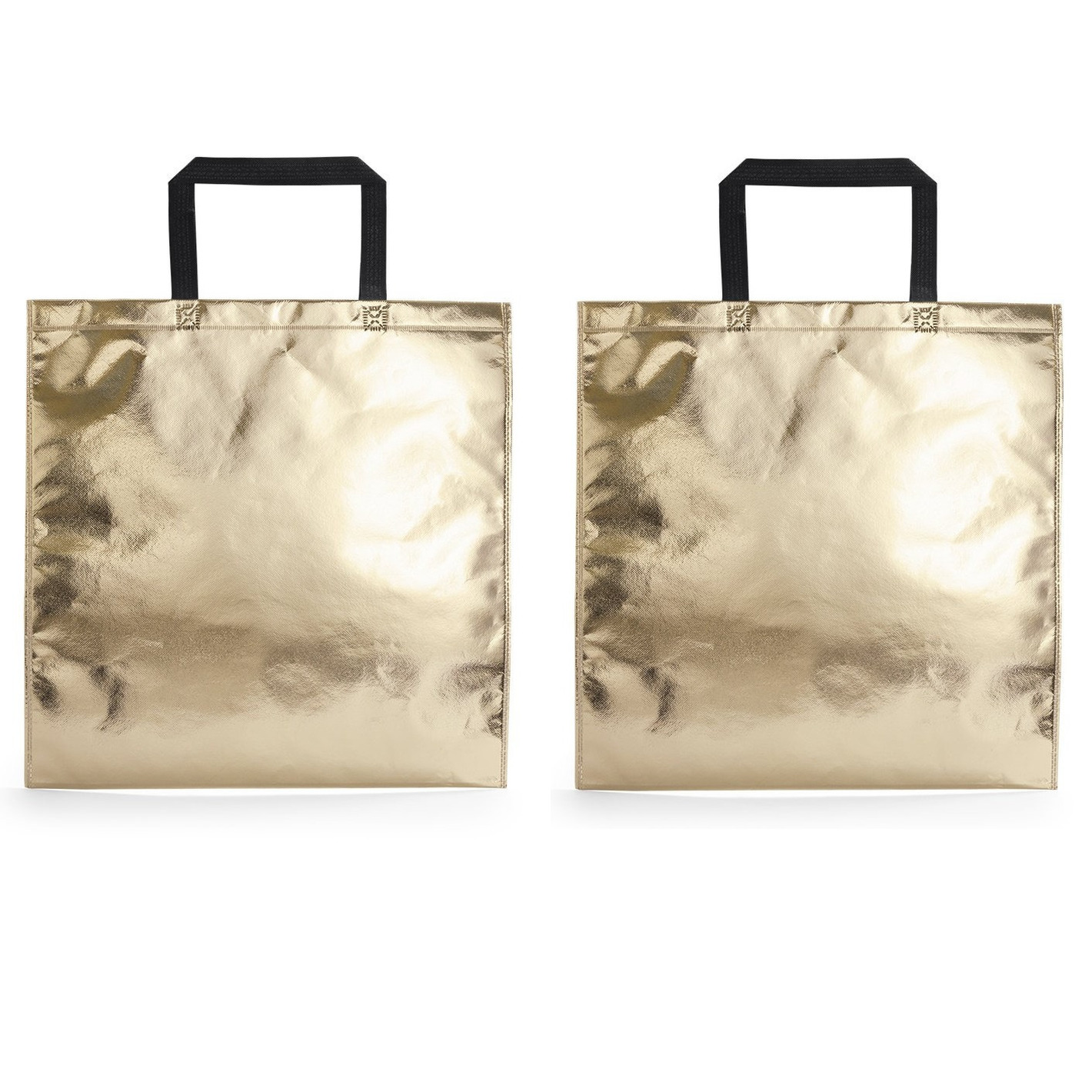 Draagtas/schoudertas – 2x – metallic goud – 45 x 44 x cm – kunststof