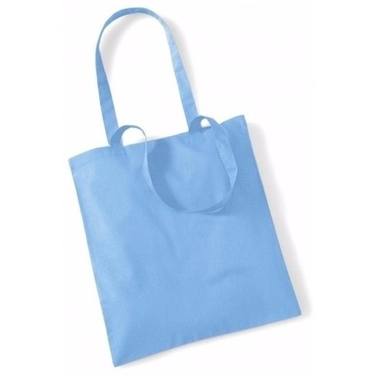 Handig en veelzijdig katoenen tasje in de kleur lichtblauw. Met een inhoud van 10 liter is deze tas ideaal als boodschappentas, gymtas, schooltas of gewoon als dagelijkse schoudertas. Dankzij de lange hengsels draag je hem gemakkelijk over de schouder. Geschikt voor zowel kinderen als volwassenen.
