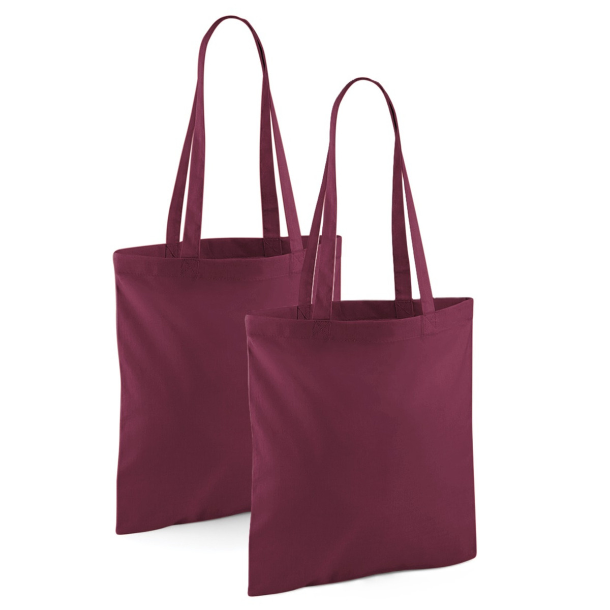 2x katoenen tasje in de kleur bordeaux en afmetingen van 42 x 38 cm. Katoenen tasje met een inhoud van 10 liter. De tas kan gebruikt worden als boodschappentas, schoudertas, gymtas of als schooltas. Geschikt voor kinderen en volwassenen.