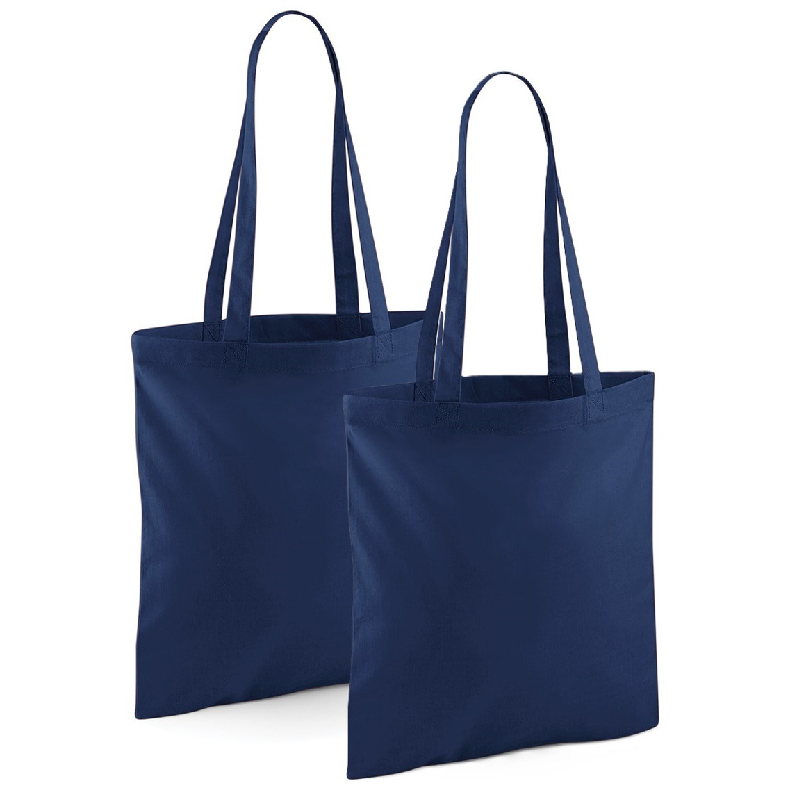 2x katoenen tasje in de kleur donkerblauw en afmetingen van 42 x 38 cm. Katoenen tasje met een inhoud van 10 liter. De tas kan gebruikt worden als boodschappentas, schoudertas, gymtas of als schooltas. Geschikt voor kinderen en volwassenen.
