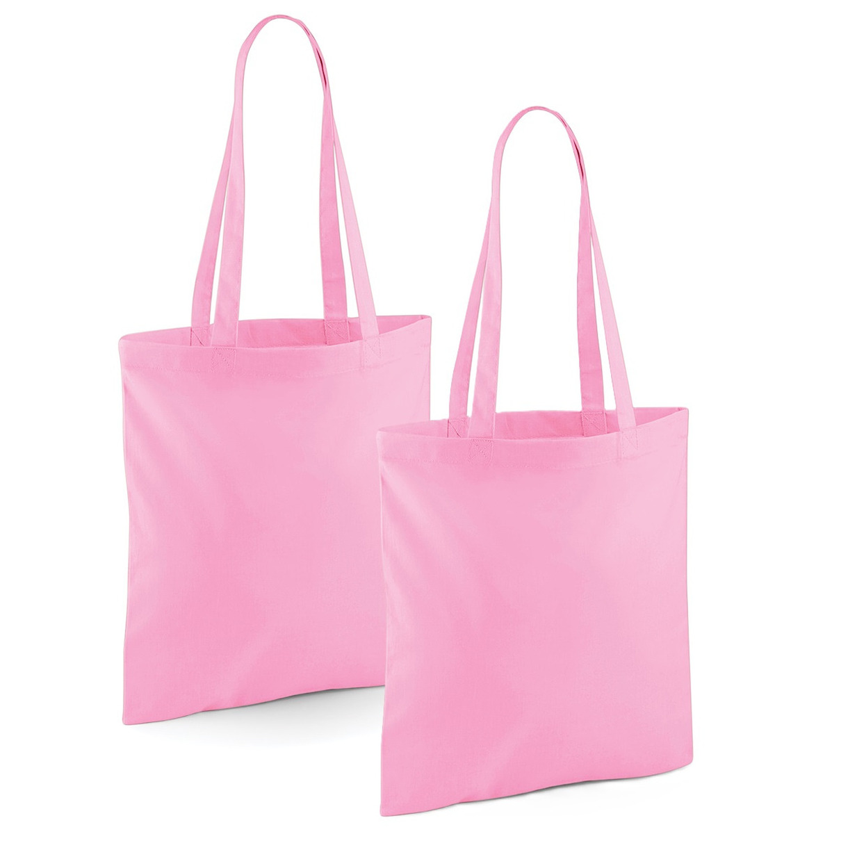 2x katoenen tasje in de kleur lichtroze en afmetingen van 42 x 38 cm. Katoenen tasje met een inhoud van 10 liter. De tas kan gebruikt worden als boodschappentas, schoudertas, gymtas of als schooltas. Geschikt voor kinderen en volwassenen.