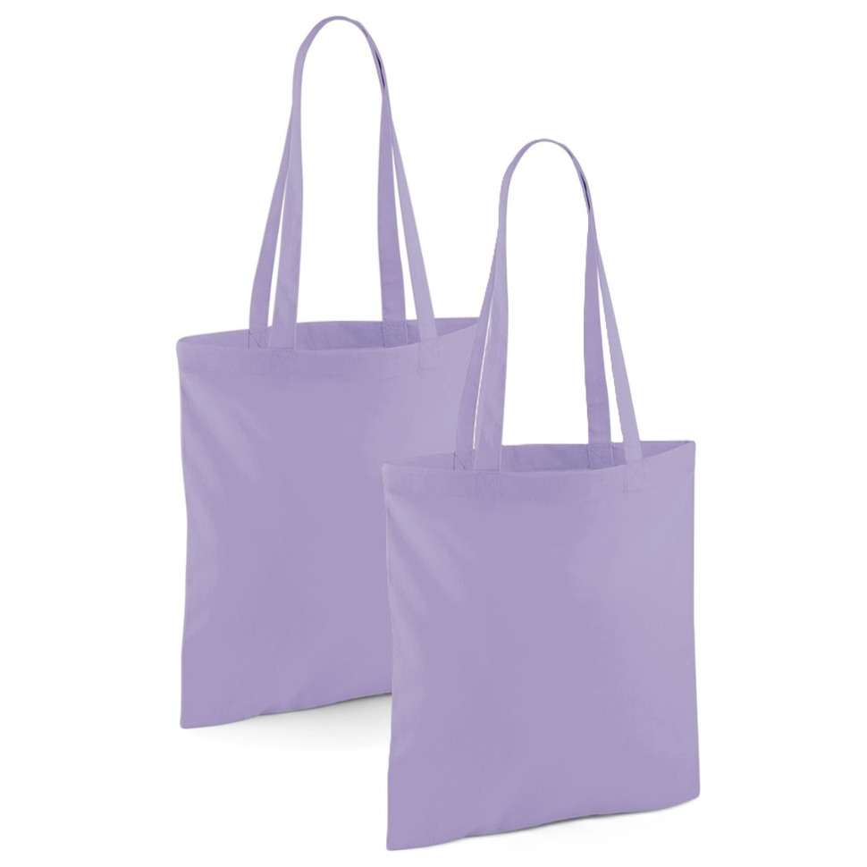 2x katoenen tasje in de kleur lila paars en afmetingen van 42 x 38 cm. Katoenen tasje met een inhoud van 10 liter. De tas kan gebruikt worden als boodschappentas, schoudertas, gymtas of als schooltas. Geschikt voor kinderen en volwassenen.