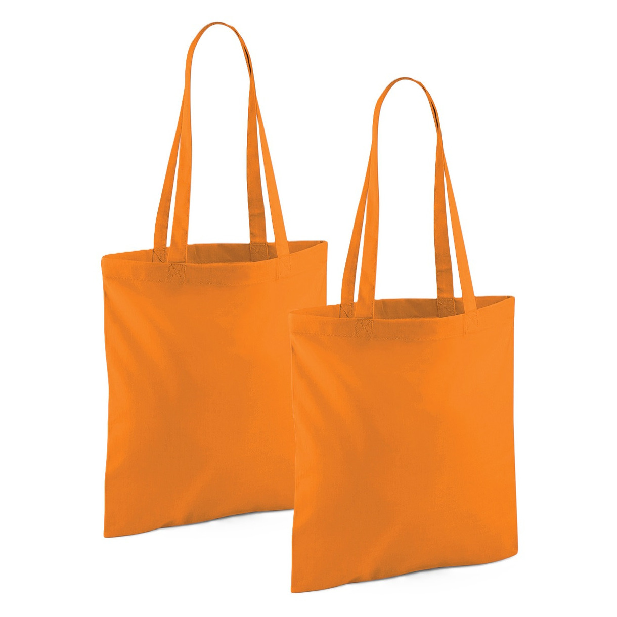 2x katoenen tasje in de kleur oranje en afmetingen van 42 x 38 cm. Katoenen tasje met een inhoud van 10 liter. De tas kan gebruikt worden als boodschappentas, schoudertas, gymtas of als schooltas. Geschikt voor kinderen en volwassenen.