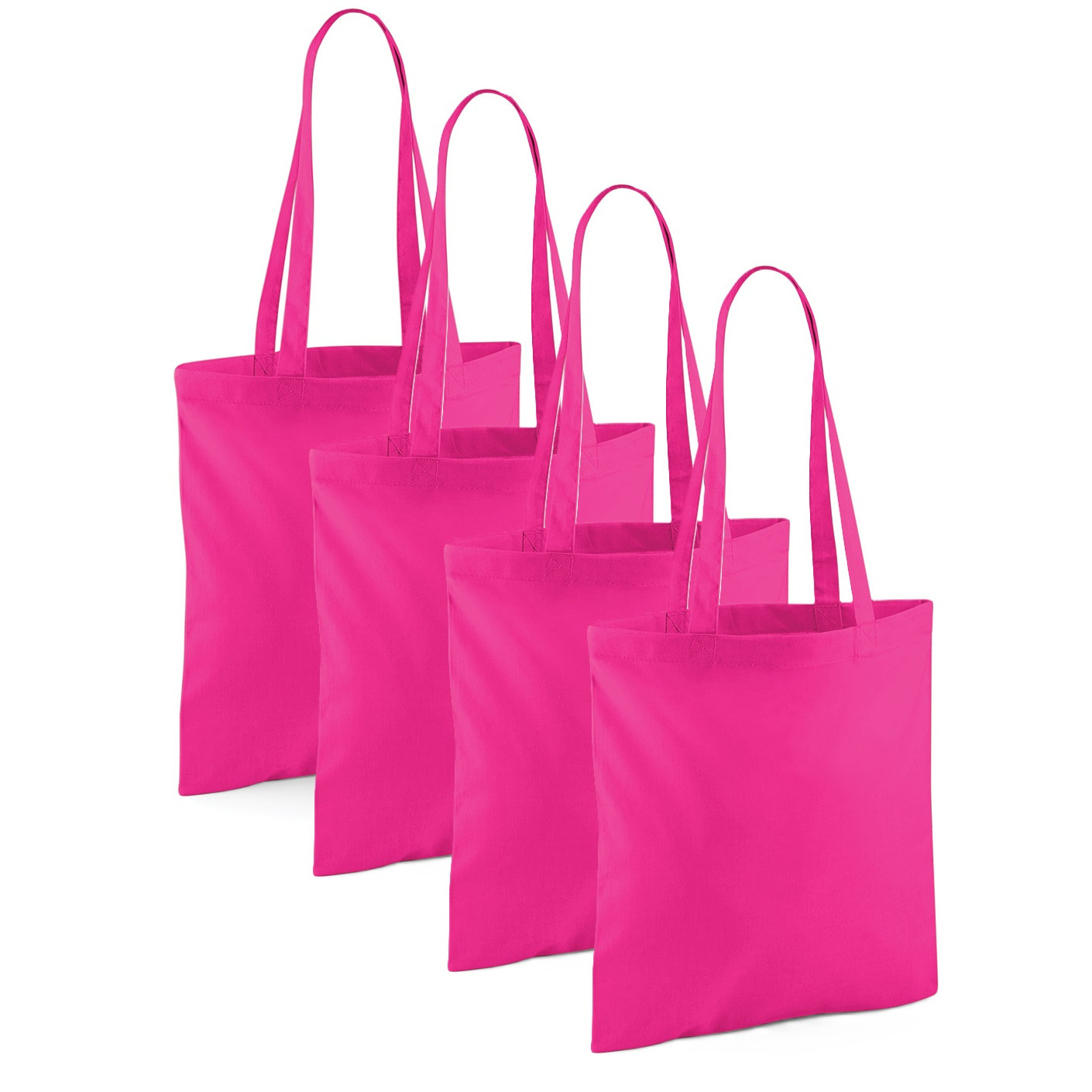 4x katoenen tasje in de kleur fuchsia roze en afmetingen van 42 x 38 cm. Katoenen tasje met een inhoud van 10 liter. De tas kan gebruikt worden als boodschappentas, schoudertas, gymtas of als schooltas. Geschikt voor kinderen en volwassenen.