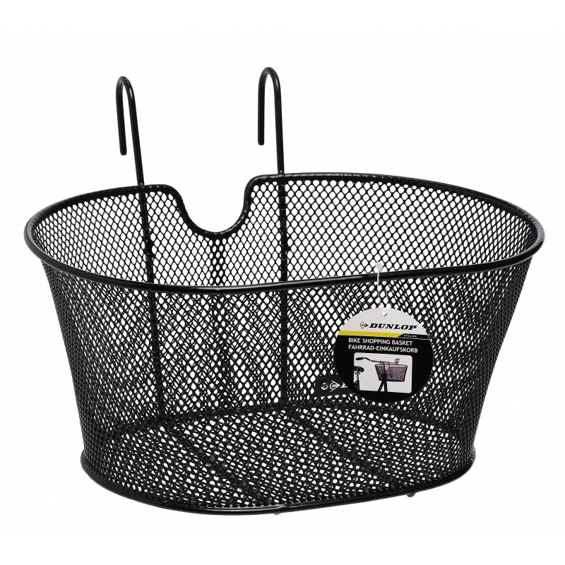 Deze ovale fietsmand kun je aan je fietsstuur hangen en weegt maar 700 gram. Deze fietsmand is gemaakt van zwart draadstaal. Het maximale draaggewicht van de mand is 7 kg en de afmetingen zijn 38 x 30 x 20 cm.