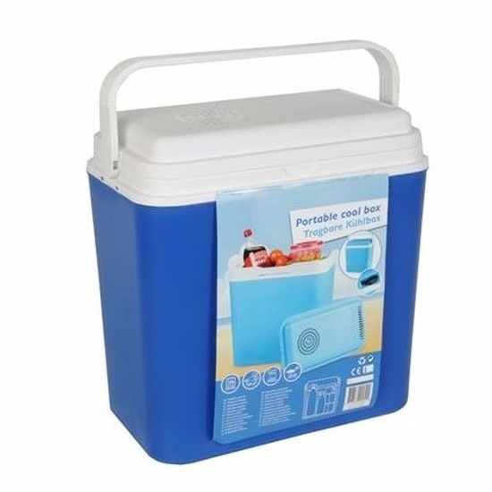 Praktische elektrische koelbox met een inhoud van 22 liter, uitgevoerd in blauw-witte kleurstelling. Deze compacte koelbox werkt op 12 volt en is ideaal voor onderweg, in de auto of op de camping. Met afmetingen van circa 40 x 24 x 40 cm biedt hij voldoende ruimte voor snacks, drankjes of lunch. Gemaakt van stevig kunststof en voorzien van een handige draaghendel. Deze koelbox houdt je etenswaren en drankjes lekker koel tijdens warme dagen of lange ritten.