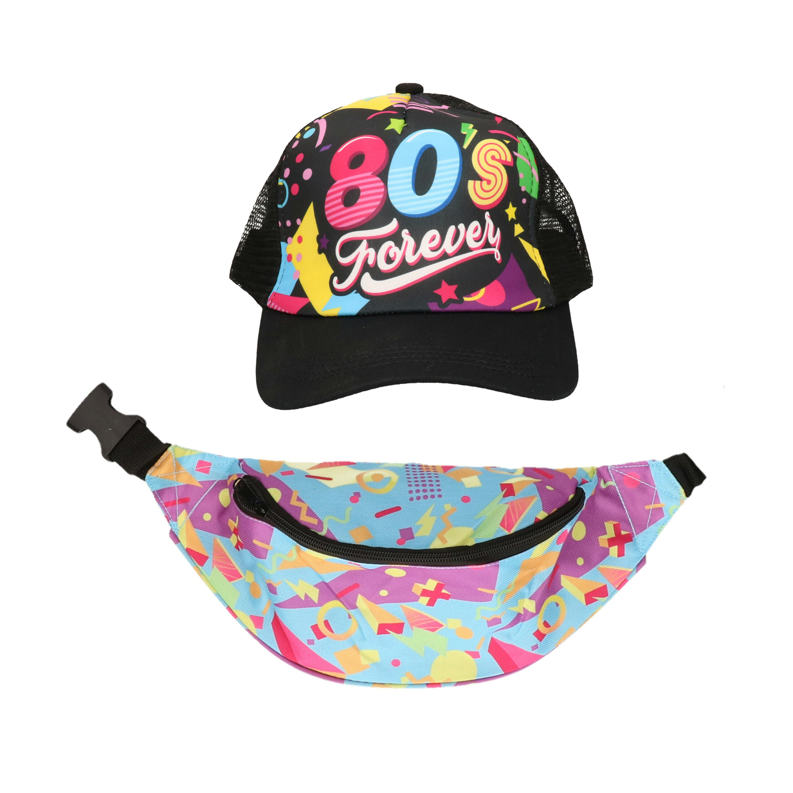 Foute 80s/90s party verkleed set – dames – retro pet en heuptasje – jaren 80/90 verkleed accessoires