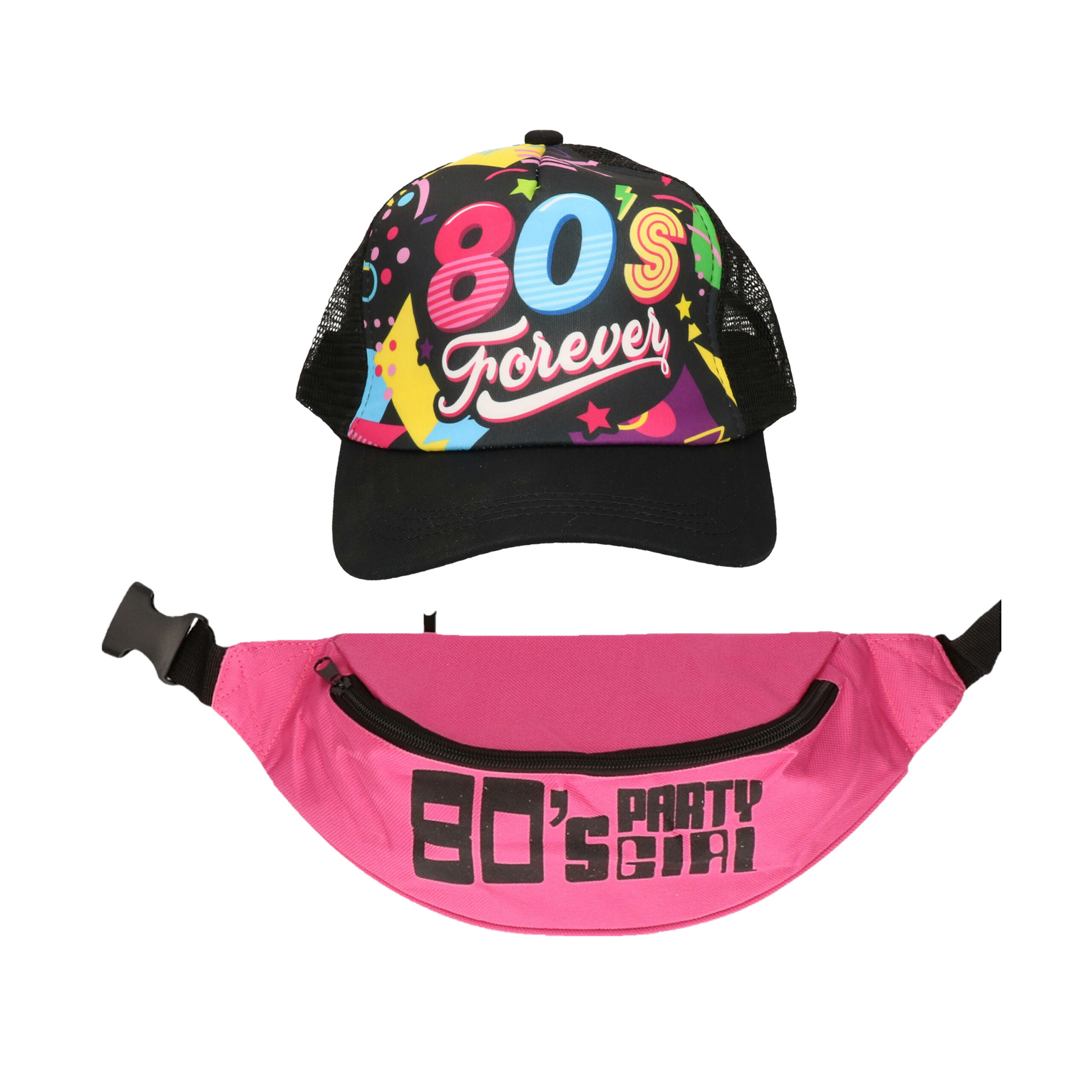 Foute 80s/90s party verkleed set pet en heuptasje – dames – jaren 80/90 verkleed accessoires