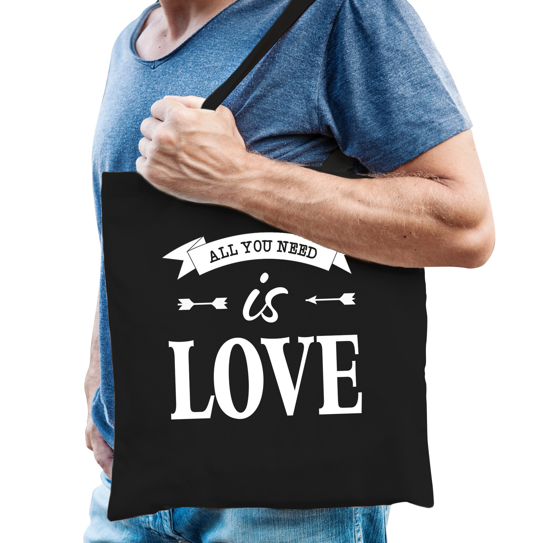Bellatio Decorations Gay Pride tas/shopper in de kleur zwart. De tas is eenzijdig bedrukt met: All you need is love. Ideaal om mee te nemen naar Gay Pride/parade. Match de tas bijvoorbeeld met een t-shirt! Materiaal: 100% katoen, 140 grams kwaliteit. Formaat vak: ca. 42 x 38 cm. Totale lengte inclusief hengsel: ca. 67 cm. Inhoud: ca. 10 liter.