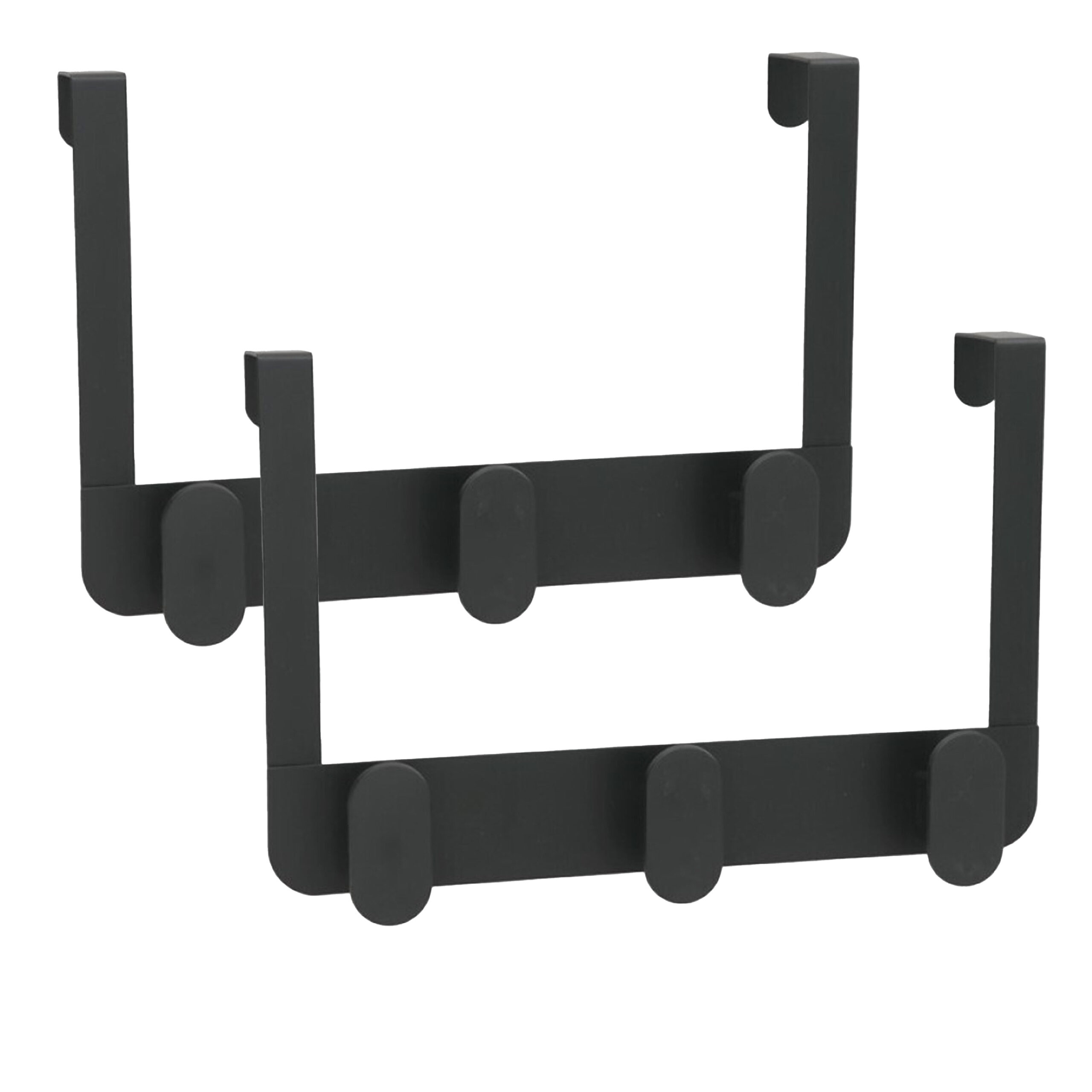 2x gerimport Deurkapstok van metaal met 3 haken van metaal in de kleur zwart. Organiseer je ruimte effici?nt en stijlvol met deze praktische deurkapstok. Uitgevoerd in de kleur zwart, biedt deze kapstok met drie ophang haken een eenvoudige en effectieve oplossing voor het ophangen van jassen, tassen, handdoeken en meer. Gemaakt van metaal, is deze kapstok stevig en betrouwbaar, ideaal voor dagelijks gebruik in verschillende kamers van je huis. Geschikt voor een stompe deur met een maximale dikte van 3 cm. Afmeting: ca. 30 x 3 x 20 cm. Materiaal: metaal.