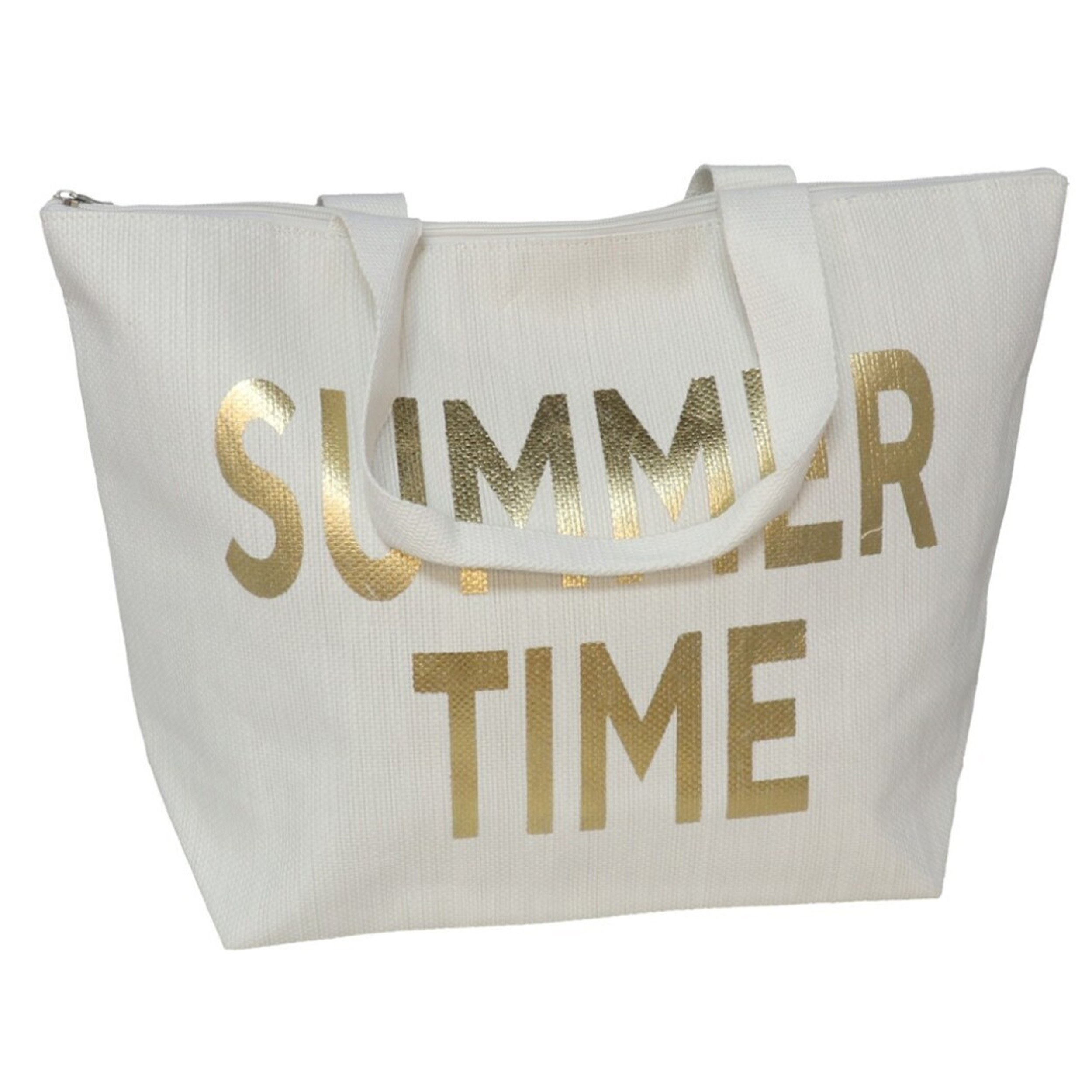 Deze elegante strandtas van Gerimport combineert een natuurlijke linnenlook met een warme gouden tint. De zachte linnen handvatten zorgen voor comfortabel dragen, terwijl de rits de inhoud veilig afsluit. Met het ruime formaat neem je moeiteloos al je strandspullen mee, ideaal voor een dag vol zon en ontspanning.