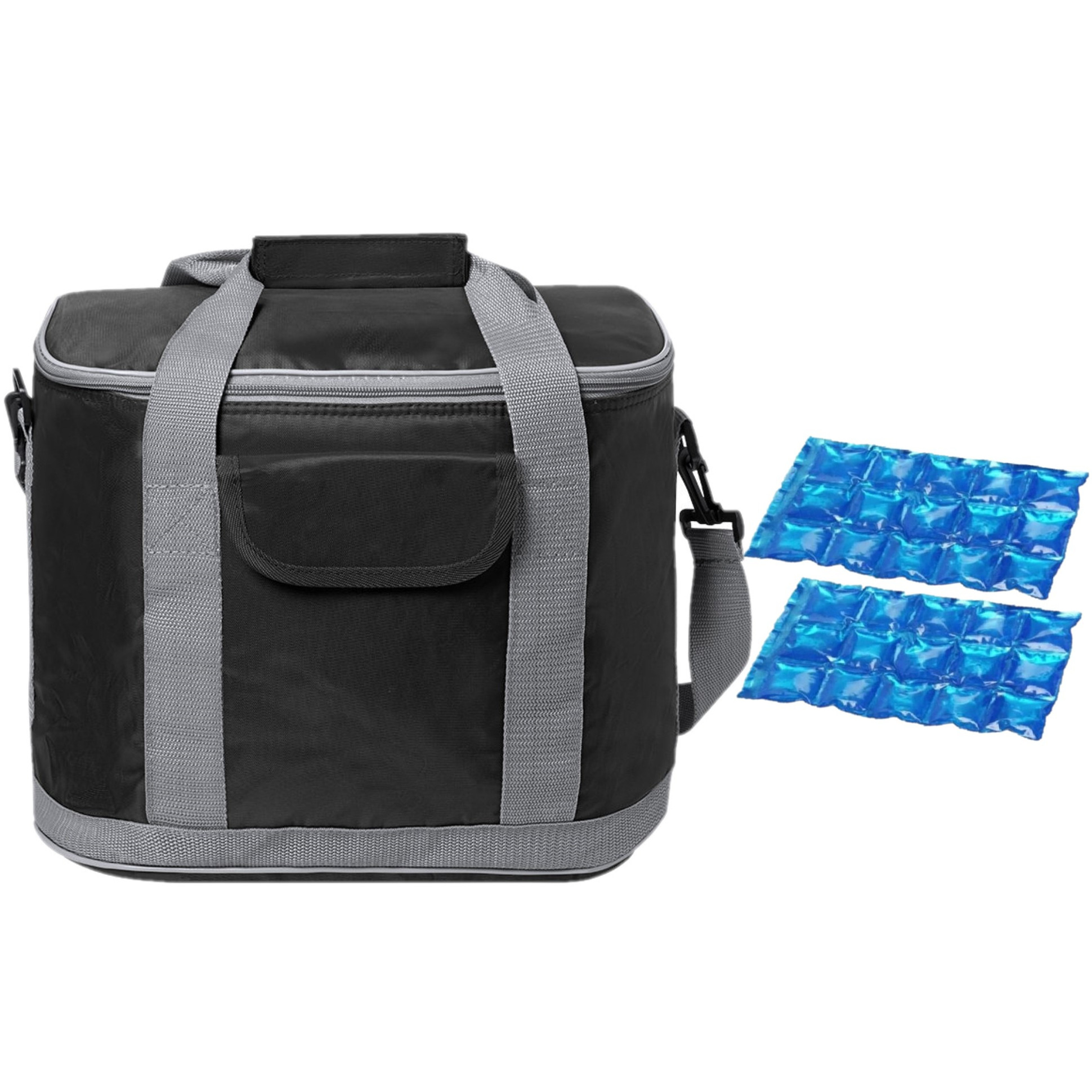 Grote koeltas draagtas/schoudertas zwart met 2 stuks flexibele koelelementen. De flexibele koelelementen zijn herbruikbaar. Afmeting koeltas: ca. 37 x 29 x 21 cm. Inhoud koeltas: ca. 22 liter. Materiaal koeltas: polyester. , Dit artikel bestaat uit:, 2x 1x Stuks herbruikbare flexibele koelelementen icepack 15 x 25 cm, 1x Grote koeltas draagtas/schoudertas – zwart – 37 x 29 x 21 cm – 22 liter – Koeltassen