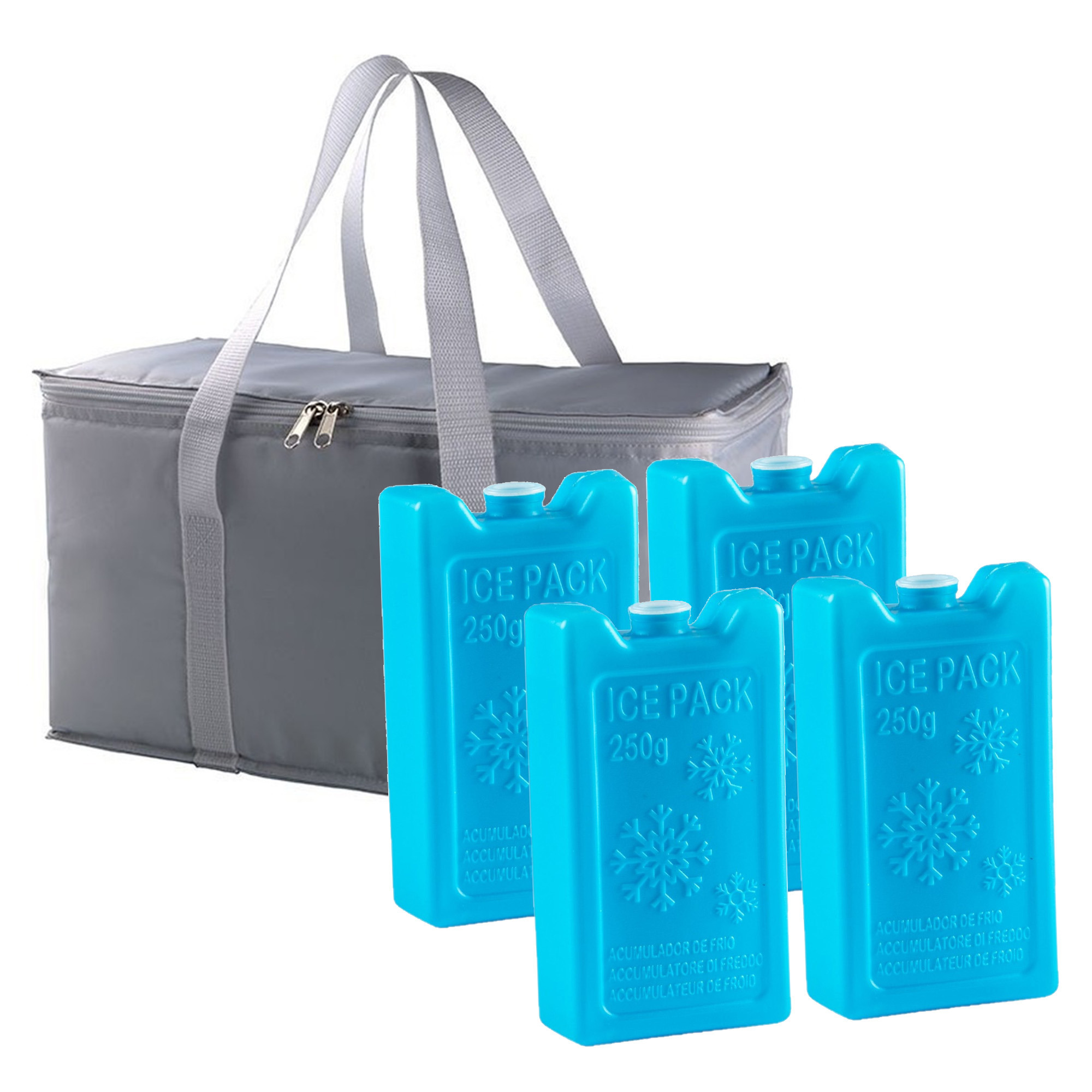 Grote koeltas zilvergrijs 39 x 22 x 19 cm met 4x stuks koelelementen