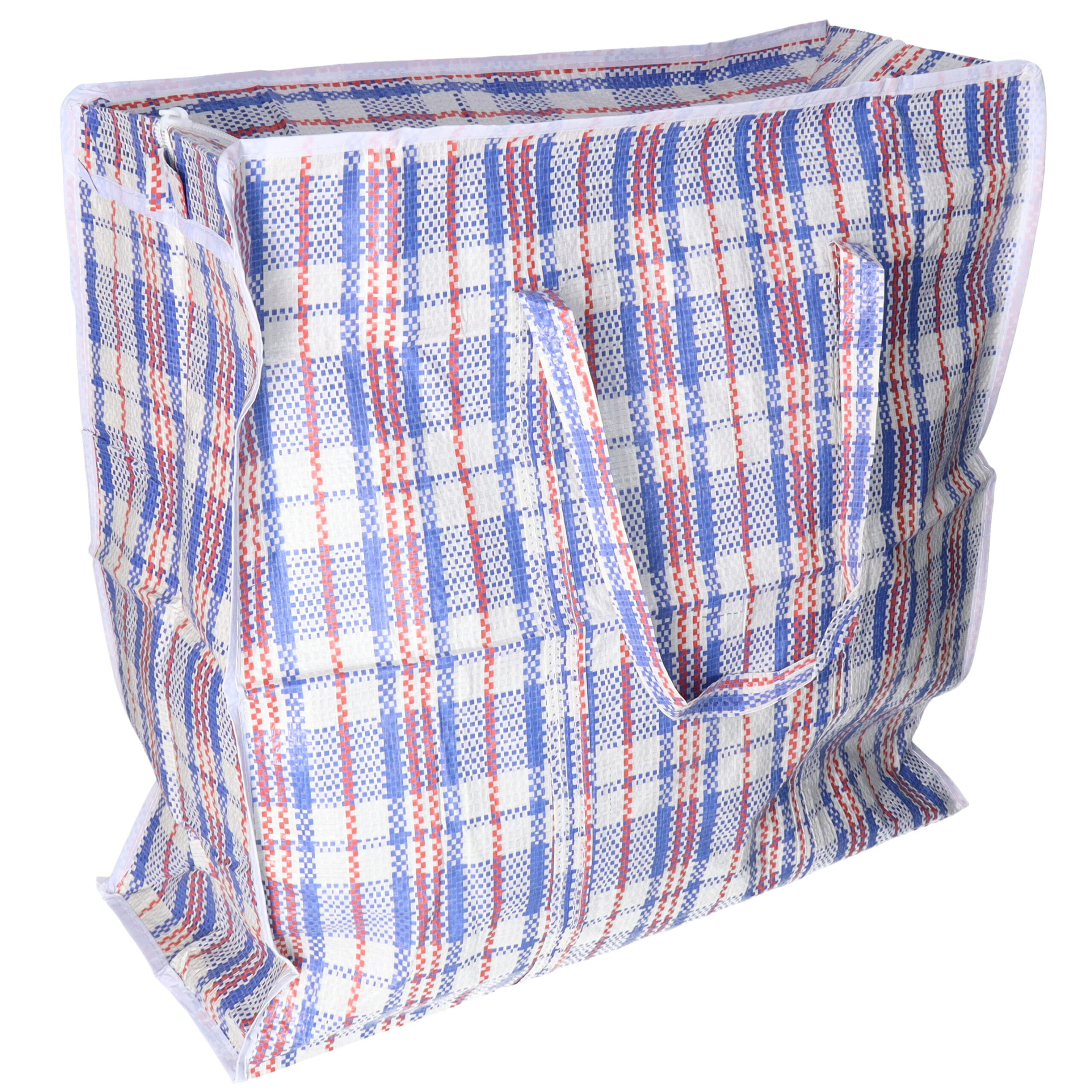 Grote opbergtas voor spullen zoals dekens, kussen, kleden, wasgoed en speelgoed. Ruime tas met rits in de kleur blauw met een gestreepte print. Deze handige opbergtas met ritssluiting en hengsels is ideaal voor het bewaren of vervoeren van spullen en textiel. Ook te gebruiken als big shopper, boodschappentas of wastas, met een maximum gewicht van 25KG is deze veelzijdige opbergzak ook te gebruiken om speelgoed en andere dingen gemakkelijk mee te nemen. Berg je spullen netjes en stofvrij op in deze handige mega tas. Met deze opbergtassen kan je je spullen gemakkelijk opbergen in de kast of op zolder. Materiaal: polypropyleen. Formaat: 50 x 50 x 18 cm.