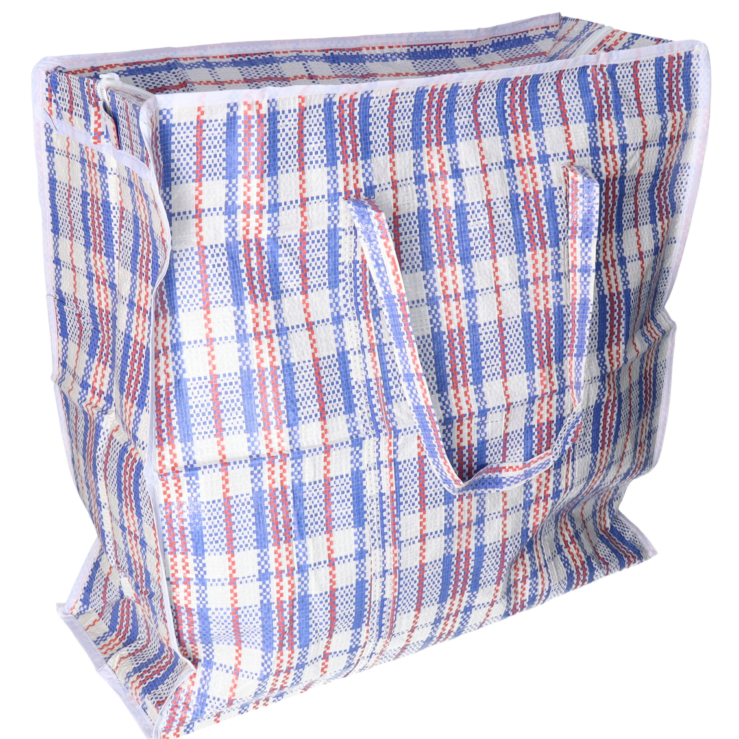 Grote opbergtas voor spullen zoals dekens, kussen, kleden, wasgoed en speelgoed. Ruime tas met rits in de kleur blauw met een gestreepte print. Deze handige opbergtas met ritssluiting en hengsels is ideaal voor het bewaren of vervoeren van spullen en textiel. Ook te gebruiken als big shopper, boodschappentas of wastas, met een maximum gewicht van 25KG is deze veelzijdige opbergzak ook te gebruiken om speelgoed en andere dingen gemakkelijk mee te nemen. Berg je spullen netjes en stofvrij op in deze handige mega tas. Met deze opbergtassen kan je je spullen gemakkelijk opbergen in de kast of op zolder. Materiaal: polypropyleen. Formaat: 60 x 60 x 18 cm.