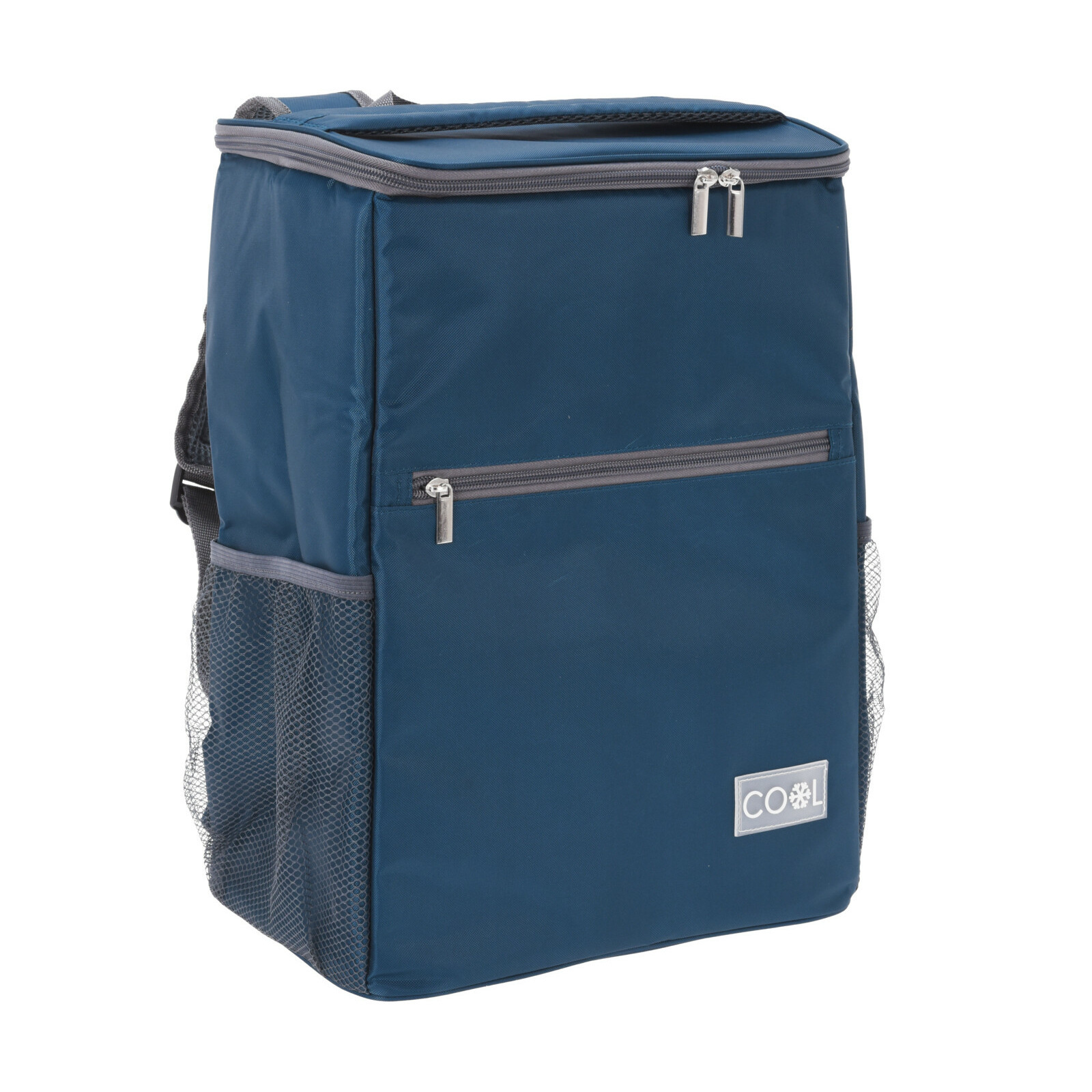 Grote strand/festival/outdoor koeltas Rugtas/rugzak met afmetingen 42 X 30 X 19 cm. Deze handige koeltas voor op je rug heeft 2 compartimenten, 1 hoofd koelvak en een zijvakje voorzien van ritssluiting. Kleur: blauw. Robuuste uitstraling. Materiaal: polyester. Met stevige schouderriemen. Voedselveilig en makkelijk schoon te maken. Inhoud: 23 liter. Mooie kwaliteit.