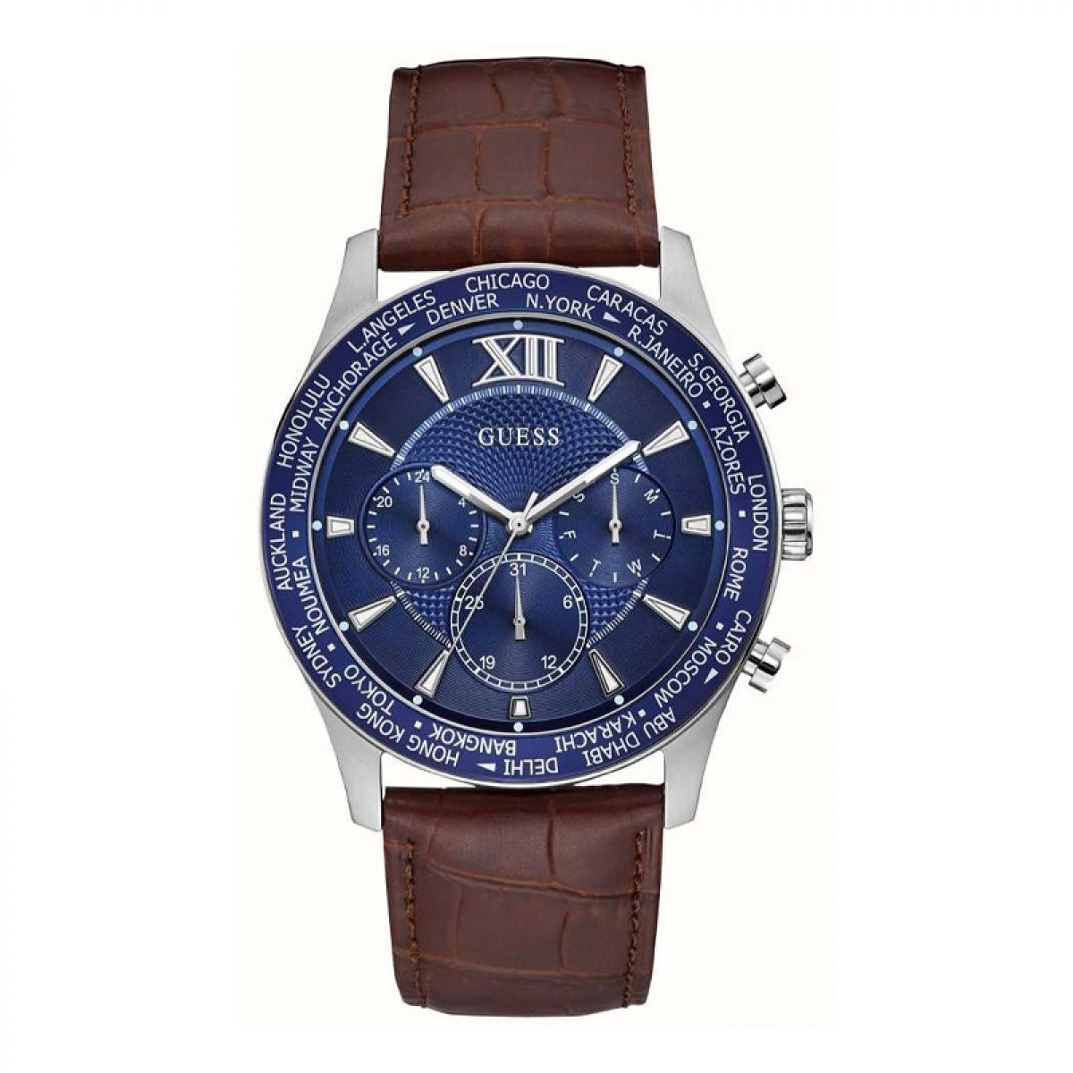 Prachtig Guess horloge voor heren met 24-uursaanduiding en dag/datumaanduiding. Het horloge heeft een edelstalen kast van 45mm in diameter en een horlogeband gemaakt van leer. De kleur van de wijzerplaat is blauw en het horlogeglas is gemaakt van krasvast mineraal. De breedte van de horlogeband bedraagt 22mm. Verder is het horloge waterbestendig tot 5 ATM. Het betreft een merkauthentiek product en wordt geleverd in de orginele verpakking met 2 jaar garantie op het uurwerk! Dus ben je op zoek naar een nieuw horloge met hoge korting? Mis deze unieke aanbieding dan niet en bestel vandaag jouw nieuwe horloge op Watch2day! OP=OP!