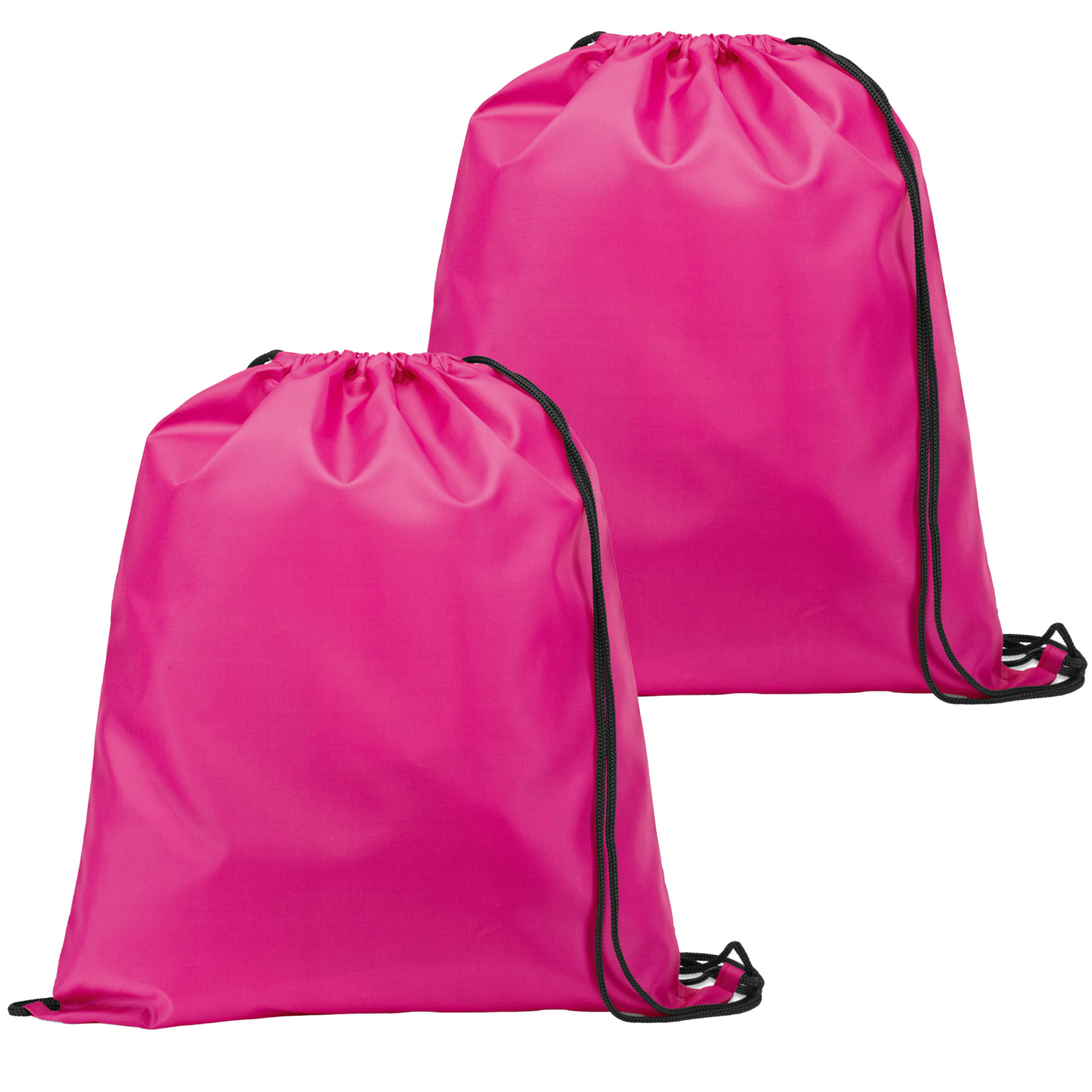 2x gymtas/lunchtas/zwemtas met rijgkoord voor kinderen in de kleur fuchsia roze. Handige gymtasjes voorzien van een rijgkoord zodat je deze kan afsluiten en op je rug kan dragen. Materiaal: Polyester. Afmeting gymtassen: 35 x 41 cm. Inhoud: 3 liter. Multifunctionele opbergtassen met vele toepassingen.