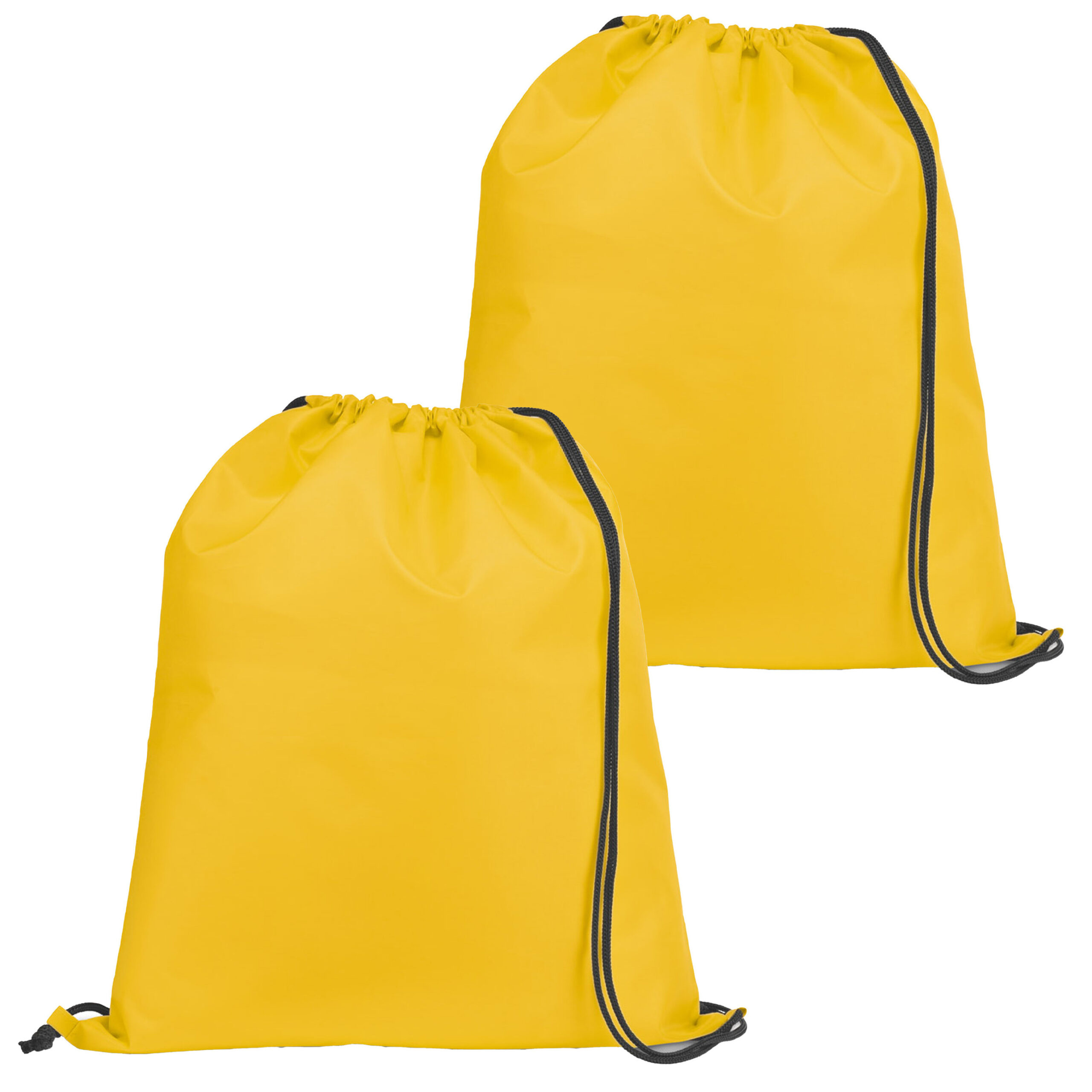 2x gymtas/lunchtas/zwemtas met rijgkoord voor kinderen in de kleur geel. Handige gymtasjes voorzien van een rijgkoord zodat je deze kan afsluiten en op je rug kan dragen. Materiaal: Polyester. Afmeting gymtassen: 35 x 41 cm. Inhoud: 3 liter. Multifunctionele opbergtassen met vele toepassingen.
